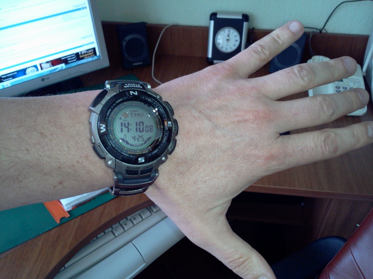 PAW-1300, покомпактнее, но без Луны и приливов/отливов. а они на руке с объёмом 16 см сидеть норм будут не большеваты? |