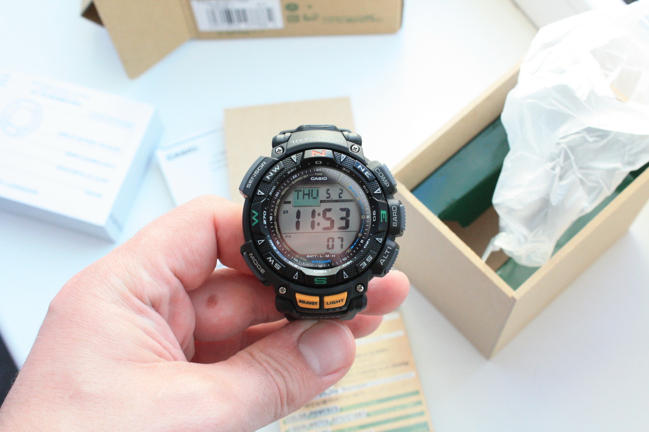 Пол: мужские Год покупки: 2013 Новые часы, состояние: N (новые в пленках) http://forum.watch.ru/images/market-question.png Цена: 7 000 руб. (продажа) Коробка: есть Документы: есть Casio Protrek PRG-240-1ER Сделаны в Тайланде Абсолютно новые, в пленках Цена: 7000р. Корпус из нержавеющей стали с полиуретановыми вставками. Жесткое минеральное стекло. Ремешок из полимерного материала. Двойной ЖК-дисплей. Автоматическая электролюминесцентная подсветка. Устойчивость к низким температурам (до -10С). Аккумуляторы с питанием от солнечной энергии, индикатор уровня заряда. 6 месяцев работы без подзарядки. 23 месяца в режиме ожидании без подзарядки. Барометр. Термометр (-10°C / +60°C). Компас. Высотомер (до 10 000м), измеритель изменений высоты. Отображение времени восхода и заката солнца. Таймер, время отсчета 24 ч. Секундомер - точность 1/100 секунды, максимальное измеряемое время 24 часа. Будильник (5 сигналов), ежечасный сигнал, функция повтора сигнала. Полностью автоматический календарь, учитываются месяцы разной продолжительности и високосные годы. Мировое время. Формат времени 12/24. Водонепроницаемость при давлении 10 атмосфер. (WR 100) Размер корпуса 57,3 x 50,9 мм x 15,3 мм. Вес 65,4 г. Отправлю по России. Пишите - отвечу на все вопросы. Вложение 435440 Вложение 435441 Вложение 435442 Вложение 435443 |