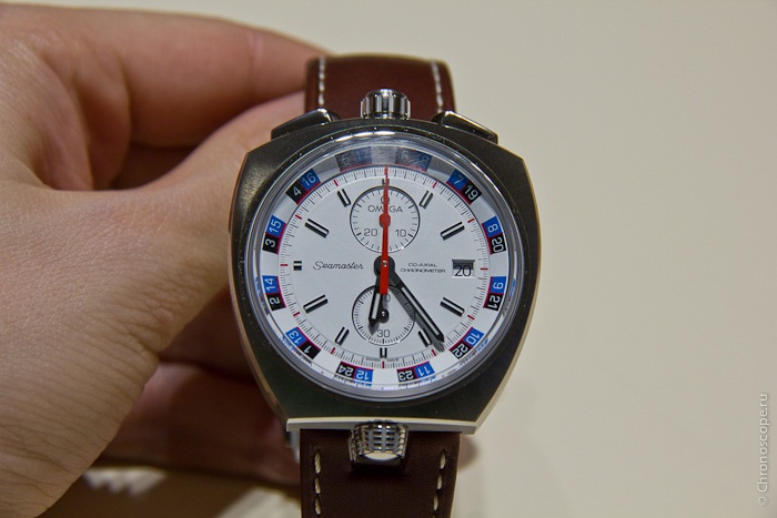 Omega, как и большинство «старых» марок, не смогла в 2013 году миновать тему своего наследия и поэтому во время базельской часовой выставки гости ее стенда с удивлением и радостью обнаружили херитажный хронограф Seamaster Bullhead. Привет фанатам 1970-х годов!