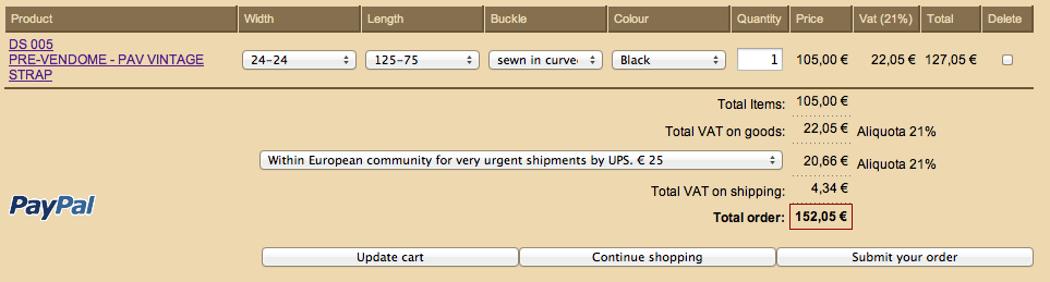 http://www.distefanostraps.com/img/logo_distefano.gif 1. Ремень от Simona di Stefano DS005 Pre-Vendome Pav Vintage Strap Черный, строчка беж Ширина: 24 х 24 мм Длина: 125 х 75 мм Толщина: 3,5 мм Бакля стальная, вшитая, матовая. Состояние: минимум б/у, отличное. Цена: 3500 http://forum.watch.ru/picture.php?al...ictureid=52225 Доп. фото в моем профиле в альбоме :) Для любителей посчитать, голый расчет во вложении ниже :cool: 2. Ремень от Simona di Stefano DS 002 The Classic Vintage Bruno Мастхэв! Супер мягкий, жаль, но мне мал, заказан такой же длиннее. Черный, строчка молочная Ширина: 27 х 24 мм Длина: 125 х 75 мм Толщина: 5 мм Бакля стальная, вшитая, полированная Состояние: новый ремень! Цена: 6500 http://forum.watch.ru/picture.php?al...ictureid=52223 Предпочтительно Москва. Возможен и пересыл отправления первым классом почтой РФ (+200р.) Вложение 439867 Вложение 439868 |