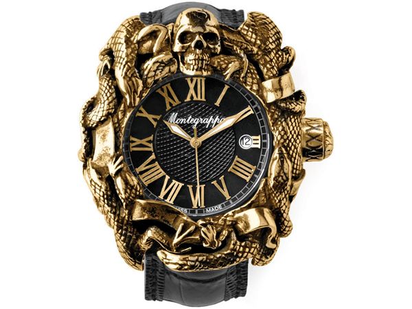 Montegrappa, и посол бренда Сильвестр Сталлоне, продолжают активно развивать линейку аксессуаров Chaos, включающую такие экземпляры, как запонки и ручку. Новым дополнением к коллекции стали ограниченные тиражом наручные часы Chaos Automatic Analogue Wristwatch. Несколько напоминающие экспонат антикварной лавки, часы довольно успешно сочетают в себе суровый, агрессивный дизайн и элегантный стиль. Корпус, размером 54 мм на 43 мм, выполнен из золота, и украшен черепом и змеями.