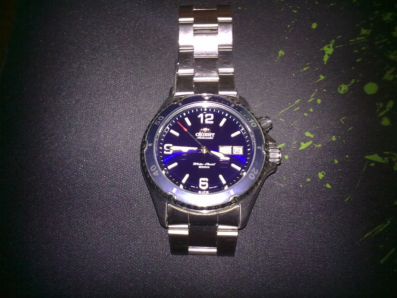 Есть Ориент с синим циферблатом - это мои летние часы на "каждый день". Ношу на штатном браслете с любой летней повседневной одеждой (что под джинсы- рубашки с коротким рукавом, что под шорты - футболки) - мысли пересадить их на ремень при летней жаре как-то даже не возникало:D. Синий цвет красиво "играет" на солнце и заряжает меня позитивом. Который год уже не надоедают:).
