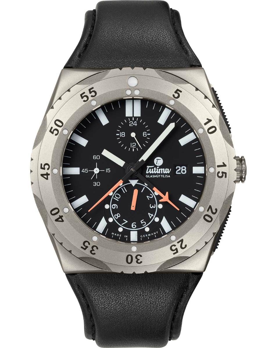 Она имеет корпус, изготовленный из титана, диаметром 46,0 мм, толщиной 15,8 мм, водонепроницаемый до 300 метров. Завинчивающаяся заводная головка, "притопленная" в корпус, расположена на 3 часах; продолговатые пушеры хронографа - на 2 и 4 часах. Вращающийся однонаправленный круглый дайверский безель. Сапфировое стекло с антибликовым покрытием защищает циферблат матово-черного цвета, с часовыми индексами, часовой и минутной стрелками, покрытыми белым люминесцентным составом. Модель оснащена швейцарско-немецким автоматическим механизмом Tutima 321, с модулем хронографа, разработанным компанией Tutima, с функциями индикации часов, минут (посредством соответствующих центральных стрелок), секунд (на малом боковом циферблате, расположенном на 9 часах), даты (посредством соответствующего цифрового указателя в апертуре, расположенной на 3 часах), времени в 24-часовом формате (на малом боковом циферблате, расположенном на 12 часах), а также с хронографом (центральные секундная и минутная стрелки, 12-часовый счетчик, расположенный на 6 часах). Поставляется на черном кожаном ремешке или на титановом браслете. Вложение 460790 Источник: http://forums.timezone.com/index.php...=0#msg_6533082 |