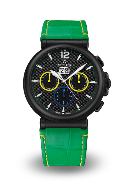Новую лимитированную модель Zetios Chronograph ZCRC3 в честь знаменитого бразильского футболиста Роберто Карлоса (Roberto Carlos) представила швейцарская часовая компания Milus. Она выпущена в трех экземплярах: черные корпус и циферблат на черном ремешке, черные корпус и циферблат на зеленом ремешке и личный выбор Роберто Карлоса - черные корпус и циферблат на желтом ремешке.