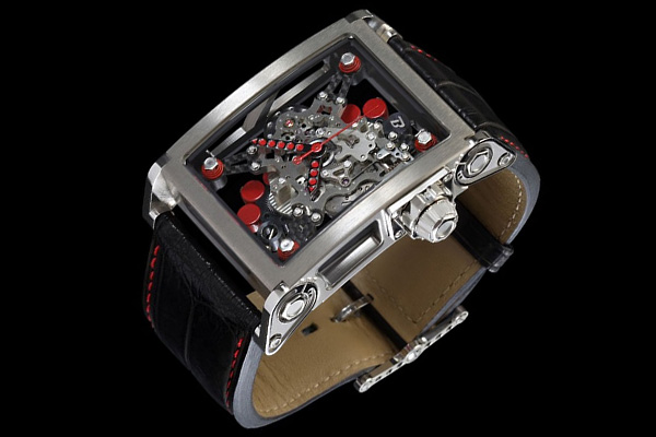 Бренд B.R.M (Bernard Richards Manufacture) принадлежит экс-гонщику, любителю высоких скоростей Бернарду Ричардсу (Франция), который на сегодняшний день является чуть ли не последним независимым часовщиком в Старом Свете. Его работы всегда обладают вызывающим внешним видом, олицетворяющим скорость, драйв, экстрим. Часы Birotor® стали результатом 30-ти месяцев кропотливой работы часового мастера. Крайне сложный часовой «скелетонированный» механизм заключён в прямоугольную рамку (40 на 48 мм) и полностью виден под идеально прозрачным сапфировым стеклом. Закреплён механизм четырьмя карбоновыми пластинами на специальных конических пружинах, которые также служат для поглощения вибраций. Хотя на выставке Baselworld 2013 часы BRM Birotor условно были отнесены к разряду «механических», они всё же имеют и функцию полуавтоматического подзавода. Работу механизма обеспечивают керамические подшипники и два фирменных ротора с танталовыми грузами красного или золтистого цвета, выделяющимися на фоне механизма. Часы Бернарда Ричардса имеют облегчённые мосты из карбонового волокна и биполярную временную систему с двойными коронками. А рубины/сапфиры с дополнительным гироскопическим эффектом, которые гармонично вписываются в механизм часов, только подчёркивают высокий статус этого аксессуара. В целом, часы выглядят достаточно агрессивно и даже несколько грубовато, но в этом и кроется вся притягательность этой модели. Стильный дизайн виртуозно дополнен красными/золотистыми (в зависимости от модификации) деталями и стрелками. Чёрный ремешок из крокодиловой кожи также может иметь характерные красные или жёлтые строчки. По словам самого Бернарда Ричардса, эти часы идеально подойдут для активных мужчин любого возраста. Мануфактура B.R.M планирует выпускать не более 100 таких часов в год. В продажу поступят три версии: титан, чёрный титан и розовое золото. Цена такого «болида времени» составит от 30 000 до 60 000 евро. Вложение 466295Вложение 466296Вложение 466297 Вложение 466298 Вложение 466300 Источник: http://www.novate.ru/blogs/190613/23247/ |