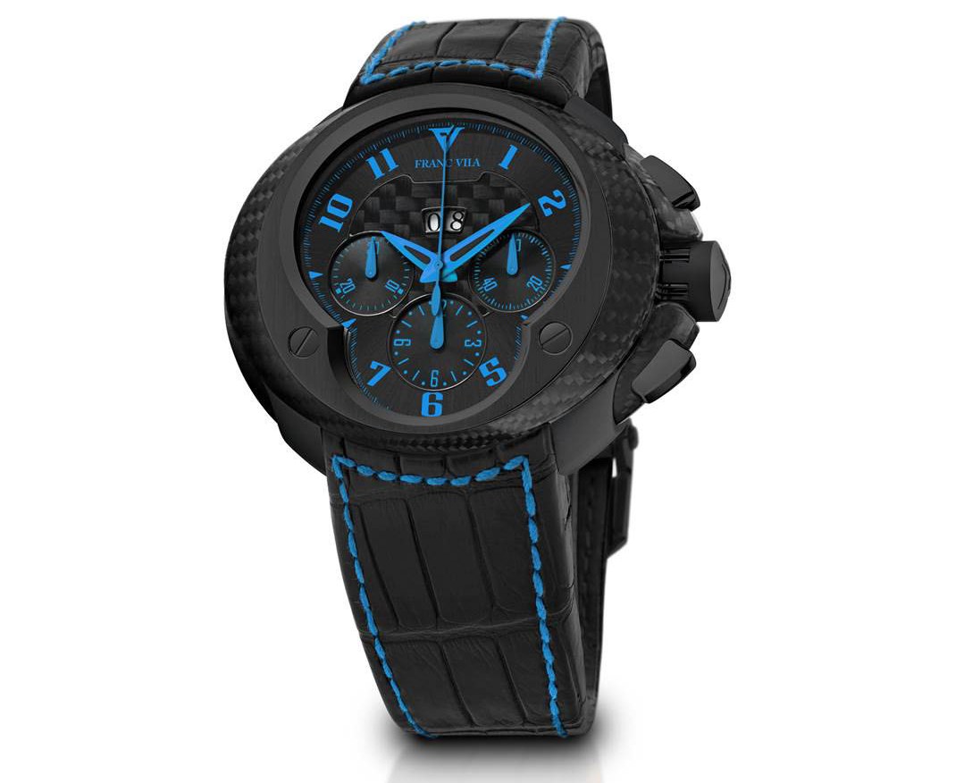 Дизайн новых лимитированнных моделей FV EVOS 8Ch Cobra Chronographe Grand Dateur Automatique El Bandido II и FV EVOS 8Ch Cobra Chronographe Grand Dateur Automatique Blue Bandido II от швейцарского часового бренда FRANC VILA выполнен в элегантном спортивном стиле.