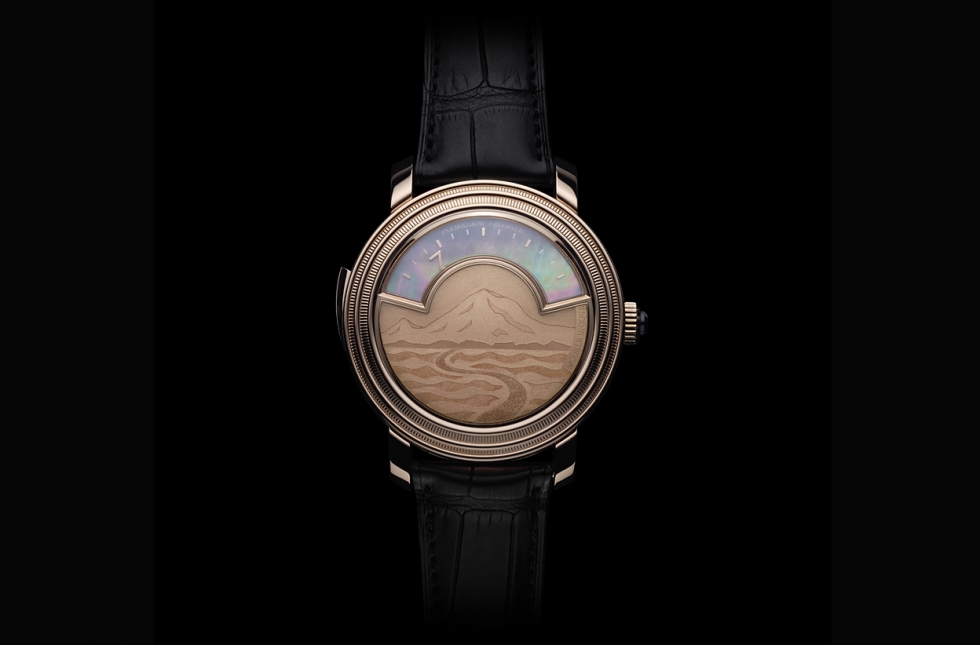 О концепции Raff House, беспрецедентного работающего по клубной системе проекта, объединившего в себе бутик часов, ювелирных украшений и ресторан мишленовского шефа Эллен Дарроз в историческом центре Москвы. Напомним, что часовые марки Bernhard Lederer, Jean Dunand, Greubel Forsey, Christophe Claret, Maitres de Temps, Parmigiani Fleurier, Ulysse Nardin, Roger Dubuis, Audemars Piguet, Vacheron Constantin, Jaeger-LeCoultre, Richard Mille и IWC представлены в Raff House самыми редкими своими моделями, по большей части из лимитированных серий, и предназначены они в первую очередь большим знатокам и коллекционерам. И вот впервые по заказу идеолога и владельца проекта Рафаэля Папяна на мануфактуре Parmigiani Fleurier создали единственные в мире часы Toric Capitole Ararat. Ключевое слово в данной модели, конечно, "Арарат" – наивысшая точка Армянского нагорья, ныне находящаяся на территории Турции, но продолжающая оставаться символом армянского народа и дорогой его сердцу святыней. Именно изображение Арарата и украшает лицевую часть циферблата, пластину из розового золота, которая скрывает механизм и выступает здесь как декоративное панно. Силуэт горы вдали и символически ведущая к ней дорога исполнены вручную в технике гравировки на золоте, и покрыты сверху прозрачной эмалью, да так искусно, что Арарат предстает словно бы в предрассветной дымке, с эффектом сфумато. Данные часы исполнены на основе модели Toric Minute Repeater Capitole, уже три года существующей в коллекции Parmigiani Fleurier. Напомним, что первоначальная модель была создана на основе карманных часов начала XIX века Perrin Freres из коллекции фонда семьи Сандоз (FEMS). И тогда, и сейчас, мануфактурный калибр PF 321 (с ручным подзаводом и запасом ходя 42 часа) оснащен минутным репетиром с кафедральными гонгами и секторным указателем времени. Расположено секторное окошко из таитянского перламутра в верхней части циферблата (над или даже позади изображения горы Арарат), на нем красуются часовые метки из золота. Время в этой апертуре указывается по 60 минут с 5-ти минутной разметкой и метками, обозначающими четверти часа. Часы (от 1 до 12) появляются на циферблате в виде арабской цифры, которая медленно смещается от первой до шестидесятой минуты, уступая место следующей. Данный модуль установлен на вращающуюся систему из трех зубчатых колес с четырьмя рукавами, каждый из которых имеет на конце по цифре. Связанный непосредственно с часовым колесом, дисковый узел приводится в движение с помощью системы кулачков, которые каждый раз заставляют появляться следующий час, когда предыдущий заканчивается свой путь. Часы с диаметром круглого корпуса 45 мм и с толщиной 12,9 мм довольно брутальны, а широкий безель с двойным накатным рифлением только добавляет им харизматичности. На обратной стороне калибра через заднюю крышку из сапфирового стекла можно видеть механизм кафедральных гонгов, имеющий форму змеи, обвивающей скелетонизированный мезанизм. Здесь же, на задней крышке часов, можно видеть их индивидуальный номер и выгравированную памятную надпись Modele Unique Raff House Special. Цена Toric Capitole Ararat довольно высока – полмиллиона долларов. Но разве важны деньги, когда речь идет о единственных в мире часах Parmigiani Fleurier, о которых потенциально мечтает каждый гордый представитель армянского народа?! Вложение 468740 Вложение 468741 Источник: http://www.watch-n-jewel.com/new/Na-vershine |