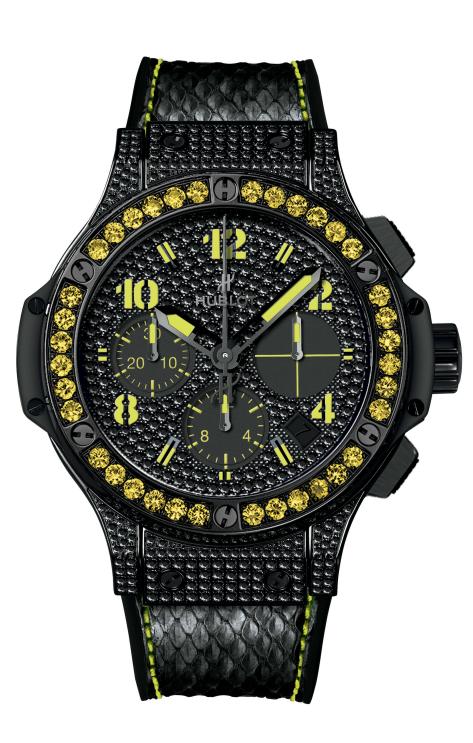 Новая лимитированная модель Big Bang Black Fluo от швейцарского часового бренда Hublot представлена в четырех вариантах отделки: синем, желтом, розовом и зеленом.