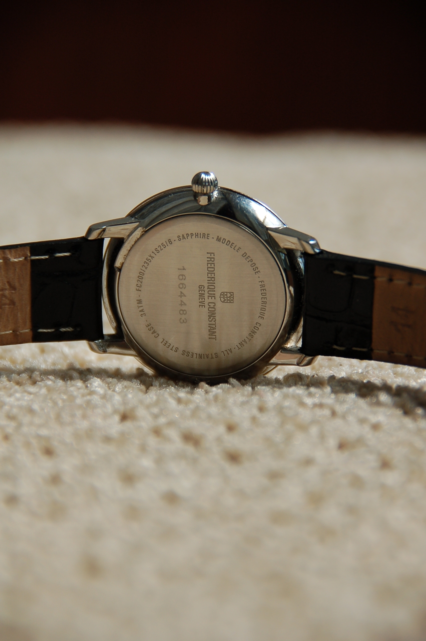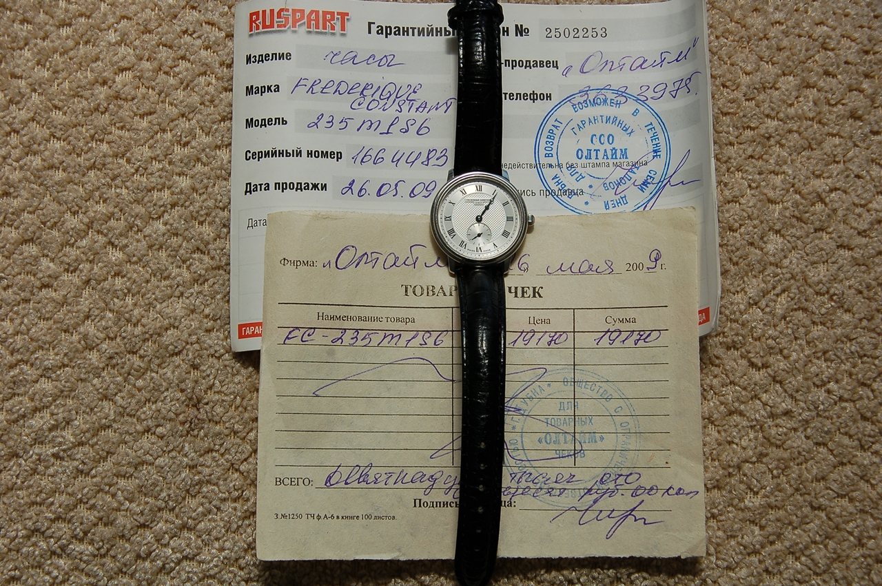 Пол: женские Год покупки: 2009 БУ часы, состояние: AA (отличное) http://forum.watch.ru/images/market-question.png Полировка: нет Цена: 11 900 руб. (продажа) Коробка: нет Документы: есть Продаю женские часики Frederique Constant FC-235M1S6. Причина продажи - добавление в коллекцию жены других красивых часиков. :) Состояние очень хорошее/отличное. Часики выглядят очень элегантно, в стиле брегетов. :o Двойной ободок вокруг циферблата, полукруглая рифленая заводная головка на трех часах, циферблат с гильоше, вынесенный циферблат секундной стрелки, стрелки часов и минут с яблоками Бреге, новый ремешок с фирменной баклей. Сапфировое стекло (похоже, с антибликовым покрытием). Диаметр часов 28 мм, с заводной головкой - 30 мм, толщина - 5 мм. Сильных царапин нет, - естественные от обычного ношения. В комплекте часы с ремешком, гарантийный талон и товарный чек. Цена указана с торгом. Прошу не стесняться, готов ответить на любые поставленные вопросы. ;) Вложение 473219 Вложение 473220 Вложение 473221 Вложение 473222 Вложение 473226 Вложение 473227 |