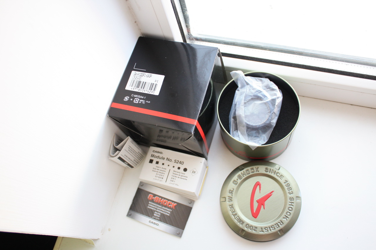 Пол: мужские Год покупки: 2013 Новые часы, состояние: N (новые в пленках) http://forum.watch.ru/images/market-question.png Цена: 16 300 руб. (продажа) Коробка: есть Документы: есть CASIO G-SHOCK GW-A1000FC-2ADR Made in japan Абсолютно новые, в пленках Новые G-Shock с системой Smart Access для интуитивного управления — идеальное решение для пилотов. G-Shock Gravity Defier. Питание от солнечной энергии, индикатор низкого заряда батареи. Необритовое светонакопительное покрытие обеспечивает длительное послесвечение в темноте даже после кратковременного нахождения на свету. Ударопрочная конструкция защищает механизм от ударов и вибрации. Тройная защита от воздействия гравитационной, центробежной и вибрационной сил. Функция автоматического сохранения энергии. Время работы аккумулятора без подзарядки - 6 месяцев, при включенной функции сохранения энергии - 29 месяцев. Коррекция текущего времени радиосигналом на территории почти всей Европы, США, Японии и Китая. Встроенный датчик температуры от -10° до +60°С с точностью 0,1°C. Секундомер с точностью показаний 1/20с и временем измерения 2ч. Таймер обратного отсчета от 1мин до 1ч. Мировое время. Звуковой сигнал - в установленное время издается тональный сигнал. Электронная заводная головка с защитой. Раскладывающаяся застежка, расстегиваемая одним касанием. Габаритные размеры: 54,1x52,4мм, толщина 16,4мм, вес 118г Отправлю по России. Пишите - отвечу на все вопросы. Порядочность гарантирую Вложение 480992 Вложение 480993 Вложение 480994 Вложение 480995 Вложение 480996 Вложение 480997 |