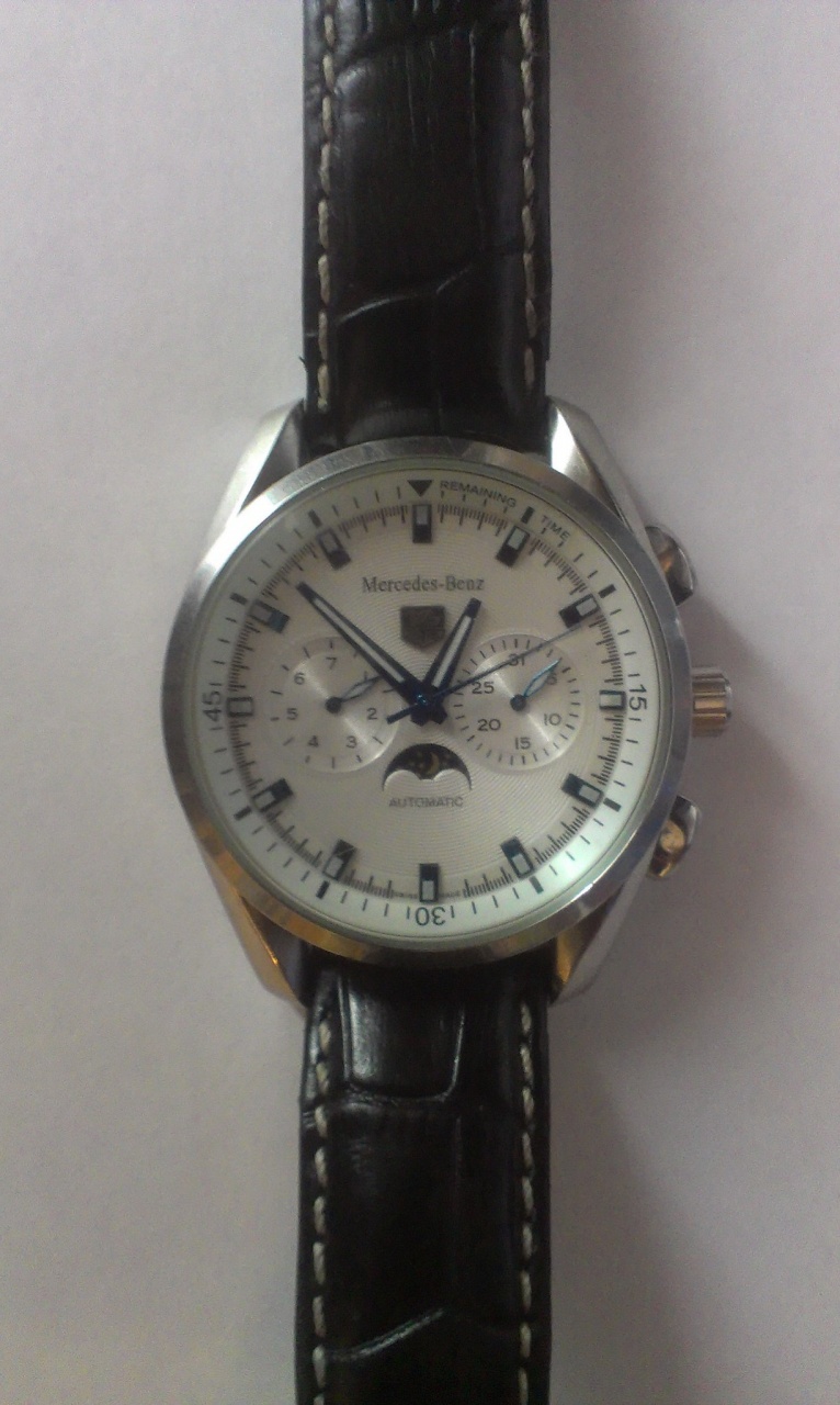 Благо, связь у них с Мерседесом довольно старая и прочная. Вот, например: http://www.oclock.info/vernisage/gal...d=3406&tid=243 Для того, чтобы понять, что у вас подделка, не надо сравнивать надписи и циферблаты :) Достаточно один раз подержать в руках настоящий Tag Heuer любой модели :) |