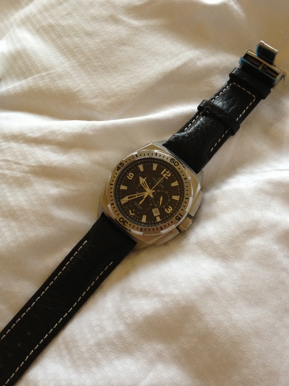 Часы так - бегом-бегом - первое-что-попалось-под-руку, покупать не стоит.Тем более, такой лихой ноу-нейм... И, ходят упорные слухи,что в Швиссии не дешевле, чем в Москве... За эти деньги хорошую Омегу на форуме взять можно... |