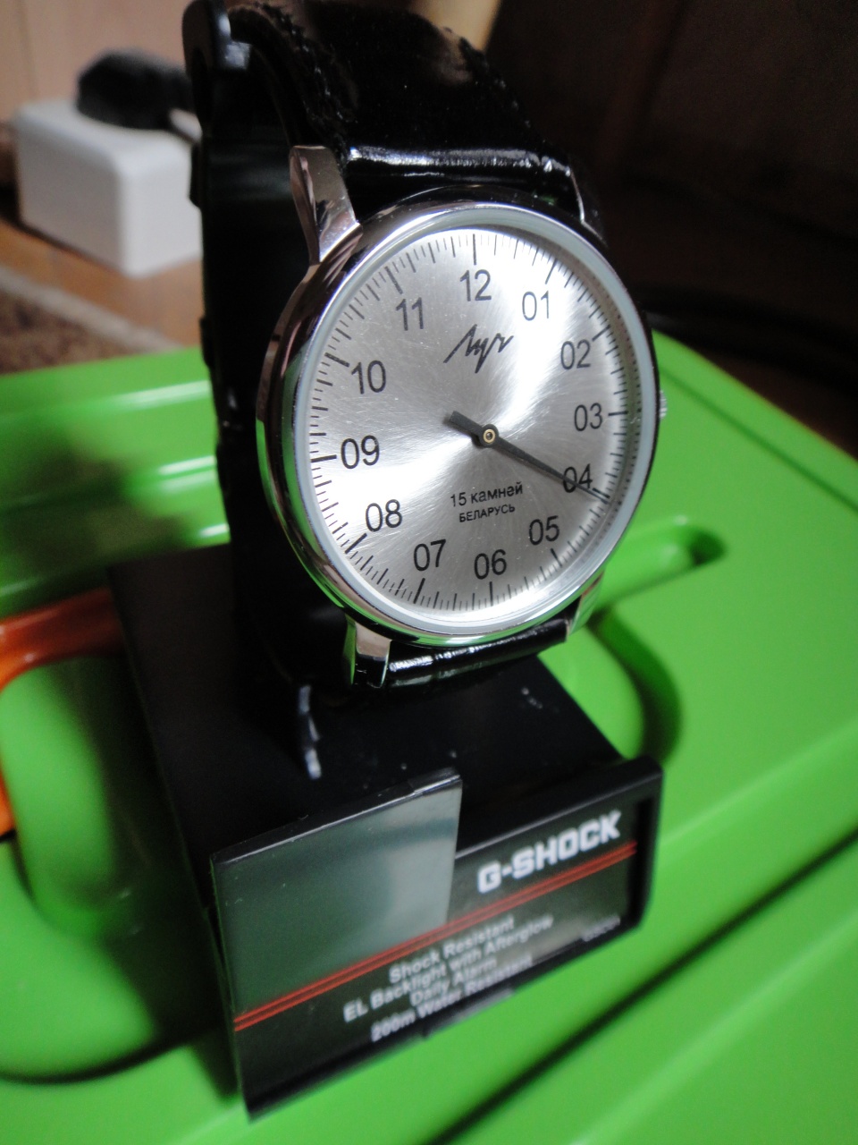приобрел в Минске такие же ,только черный цифер.Чуть побегал в поисках часов с кириллицей а не латынью,в обоих фирменных не было,нашел в цуме на первом этаже.часы хороши.чуть запариваюсь иногда с точным определением минут-нужно высчитывать по мелким делениям-одно 5 мин.ремешок отвратный.поставил на гладкий белорусский каучук(в этом же отделе около 500 русских рублей,cами часы 2400).сейчас поставил на нато и по выходным скидываю свою Омегушку и таскаю с советским ностальгическим удовольствием.точность-нормальная:)
