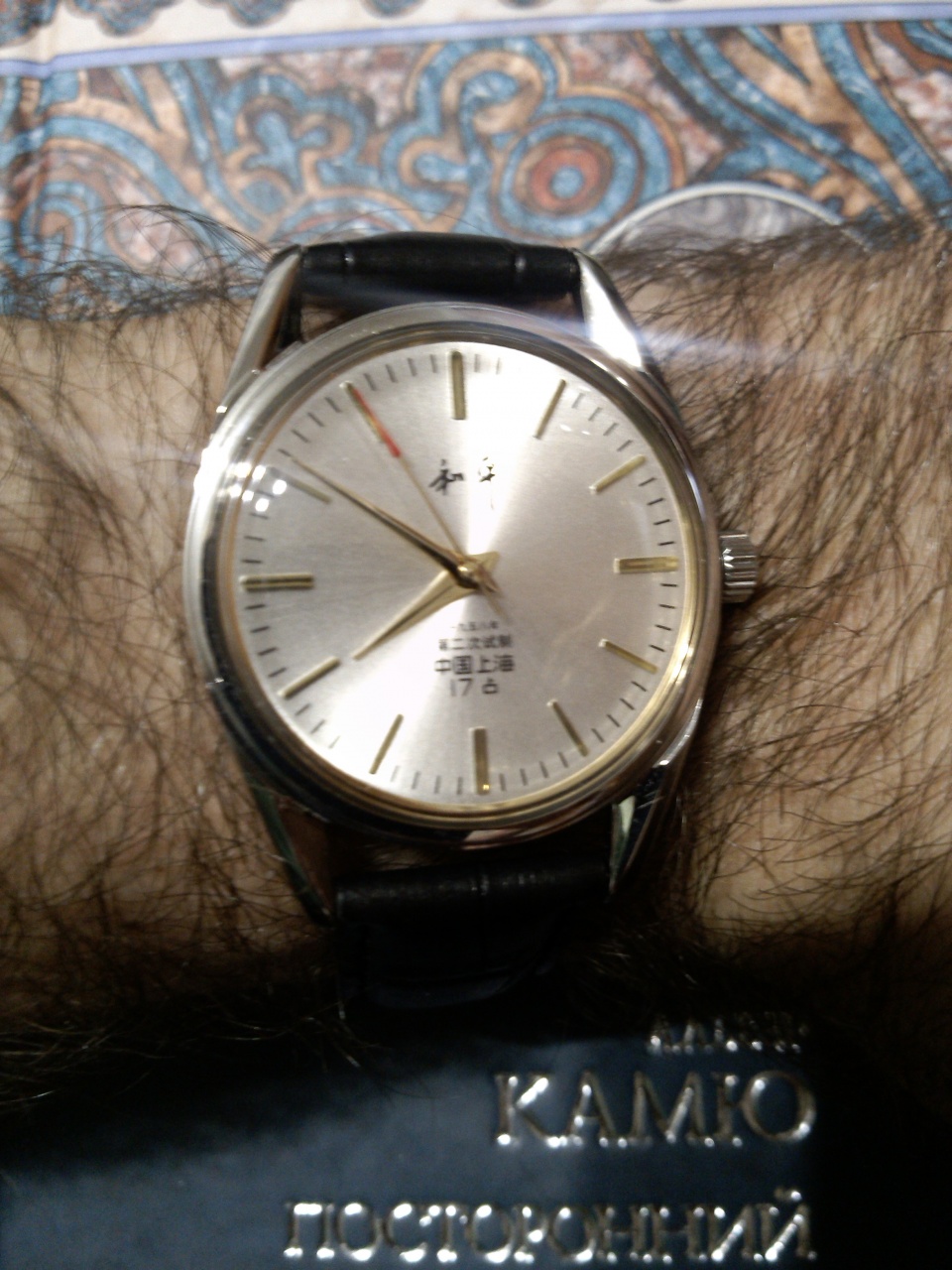 Вот и пришли... долгожданные (хотя две недели из Гон-Конга - это неплохо). Заказывал на гуд-стафе, классические Шанхай, движок - шанхайская версия базового китайского механизма на ручном приводе. Извиняюсь за качество фото - телефон, да и еще они такие блестящие что поймать нормальный ракурс - очень сложно. Из приятных плюсов - отличная коробочка, из неприятных минусов - стандартный китайский ремешок из дерматина советской кушетки. Точность - пока норм, "криминальных" отклонений нет, реально замерять - нужна хотя бы неделя наблюдений. Радуют - хожу довольный как слон. На почте уже кажись меня начали узнавать, даже адрес мой не спрашивают - запомнили... ЧБ прогрессирует.