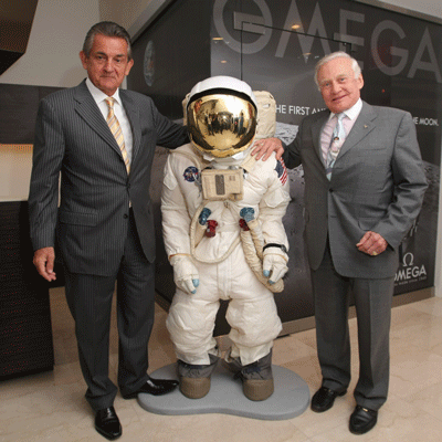3 июня астронавт Баз Олдрин и президент компании Omega Стивен Уркхарт отметили 40-ю годовщину знаменитой прогулки по Луне в бутике Omega на Пятой авеню в Нью-Йорке. Баз Олдрин и Нейл Армстронг были первыми людьми, ступившими на поверхность Луны 20 июля 1969 года.