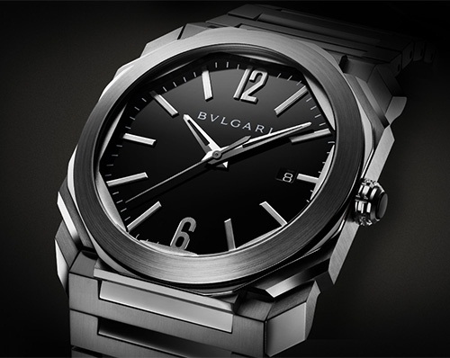 У новой модели Octo Steel от BVLGARI восьмигранный корпус (собственного производства бренда) с круглым безелем, диаметром 41,50 мм, толщиной 10,55 мм, водонепроницаемый до 100 метров. На торце завинчивающейся заводной головки, расположенной на 3 часах, инкрустирован черный кабошон. Сапфировое стекло установлено на передней стороне корпуса и на его завинчивающейся задней крышке. Циферблат матово-черного цвета, лаковый, с накладными родированными арабскими цифрами, часовыми индексами и стрелками. Часовая и минутная стрелки скелетонизированные.