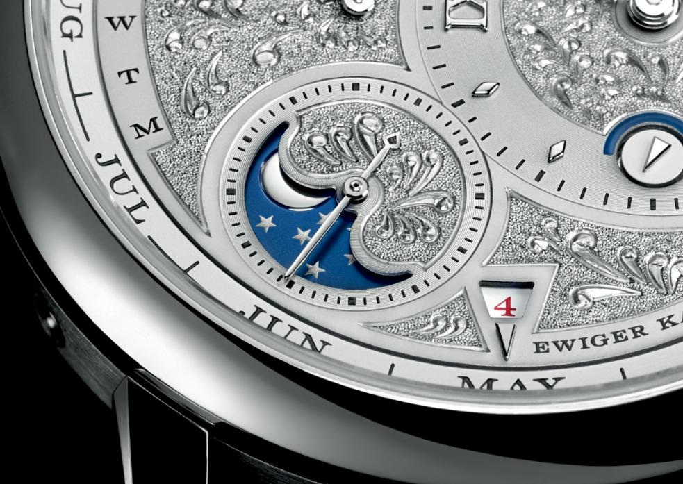 Как следует из названия, Lange 1 Tourbillon Perpetual Calendar Handwerkskunst обладают двумя классическими усложнениями. Календарь с запатентованной периферийной индикацией месяца отображает дату, день недели, месяц, високосный год и фазу луны. Тем временем, турбийон с запатентованной функцией остановки секундной стрелки, может быть виден с обратной стороны часов.