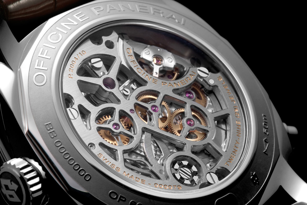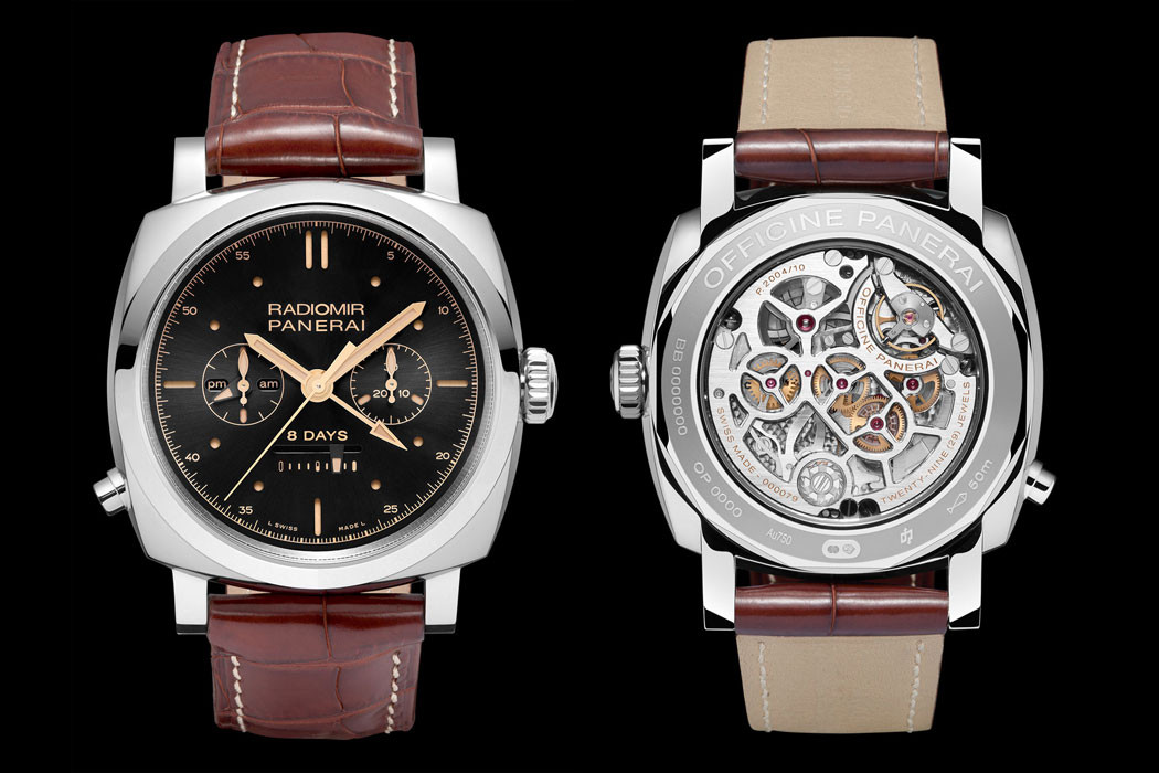 Новая лимитированная серия Radiomir 1940 Chrono Monopulsante 8 Days GMT Oro Bianco создана специально для ценителей Высокого часового искусства. Эта модель от Officine Panerai совмещает в себе дизайн корпуса Radiomir 1940 и технологию мануфактурного механизма P.2004, впервые представленного в новой версии P.2004/10 со скелетонизированными мостами и барабанами. Как видно из названия, модель оснащена сразу несколькими функциями, благодаря чему эта лимитированная серия заслуживает особого внимания.