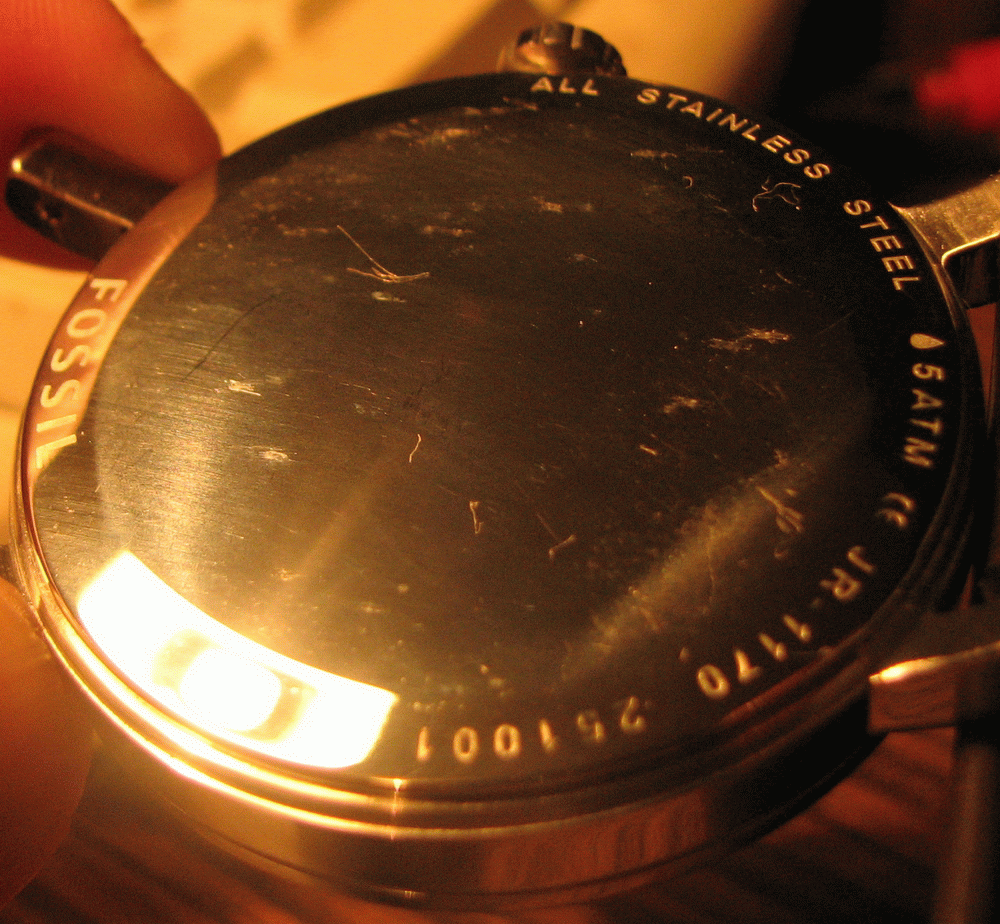 Отдавал я свои часы в мастерскую, и там их несколько раз открывали. После этого поверхность крышки была несколько потерта и поцарапана. (У меня на часах своеобразный ремешок - широкий, что-то типа напульсника, полностью закрывающий заднюю крышку, поэтому я эти царапинки и потертости заметил не сразу.) Возник вопрос - нормально ли, если после открытия часов на крышке появляются подобные артефакты? Так и должно быть, или часы открывались неаккуратно? Было примерно так: Вложение 534506 Стало так: Вложение 534507 Вложение 534508 Вложение 534509 (Царапины, кстати, в реале выглядят не так страшно, как на фотографиях. И ещё: по фотографиям может создаться впечатление, что поверхность сначала была полированной, зеркальной, а потом стала более матовой (если можно так выразиться), но оно создается из-за иного освещения.) |