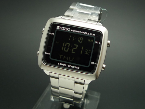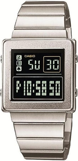 Думаю, в металле, на хорошем качественном браслете найти цифровые часы прямоугольной формы будет сложно, в основном это ретро. Посмотрите серию DB у Casio, но там браслеты штамповка.