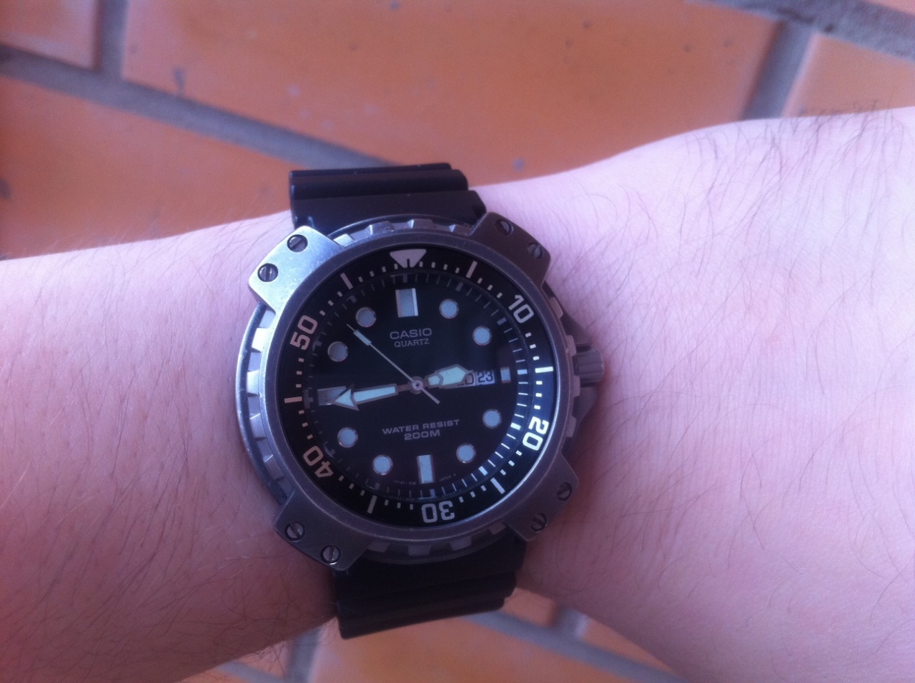 Пол: мужские Год покупки: 2012 БУ часы, состояние: A (хорошее) http://forum.watch.ru/images/market-question.png Полировка: нет Цена: 270 USD (продажа) Коробка: нет Документы: нет Продам сабж. Выпускались в конце 80-х - начале 90-х годов. Культовая вещь, в продаже встречается очень нечасто (в нормальном состоянии от $250 до $350). Немного инфо: http://www.horologycrazy.com/2009/05/casio-md-703.html Механизм: кварц, Casio module 394. Трехстрелочник + дэй-дэйт. Корпус с титановым покрытием (очень стойкое!). Диаметр 45 мм без учета ЗГ, 49 мм с учетом ЗГ, высота корпуса 12,5 мм, расстояние между дужками 22 мм. Минеральное стекло. Поворотный безель - 60 позиций против часовой стрелки. Водозащита 200 м. Made in Japan. Помимо мощнейшей харизмы и коллеккционной ценности, эти часы обладают замечательной эргономикой. Несмотря на свои немелкие размеры, потрясающе удобно сидят на небольшом запястье. Подойдут даже на 16 см. Проверено! (На фото запястье 18,5 см.) Обратите внимание на то, как организована защита безеля и стекла. Просто, гениально, красиво. Косметически часы в хорошем состоянии: есть, конечно, коцки на титановом покрытии, всё же годы... Но в глаза они не бросаются. Безель работает идеально - 60 громких сочных плотоядных кликов против часовой, фиксируется четко. Стекло без царапин. Кауч в идеале. Технически часы в отличном состоянии. Пару дней назад была сделана профилактика - чистка и смазка, поставлена новая батарейка Renata. Насчет водозащиты: возможности проверить на полные WR200 нет, так что погружаться с авквалангом я бы, наверное, в этих часах не стал, но любые бытовые контакты с водой (помыть руки, принять душ) они выдержат спокойно. Причина продажи: окончательно убедился в том, что для меня существуют только механические часы, кварц носить не могу. :o Относительно цены: прошу ровно ту сумму, за какую мне Клэймор и достался (стоимость профилактики и батарейки даже не включал). Торга нет. Оплата в рублях по курсу ЦБ на день покупки. Отправлю по предоплате в любой город планеты Земля. Упакую надежно. Опцию отправки выбирает и оплачивает покупатель. Личная встреча в Москве (центр) или в Пушкино МО. Сорри за качество фото. Если будет нужно, постараюсь переснять получше, хотя фотограф из меня тот еще. :) На все вопросы с удовольствием отвечу через ЛС. Вложение 547675 Вложение 547676 Вложение 547677 Вложение 547678 Вложение 547679 Вложение 547680 |