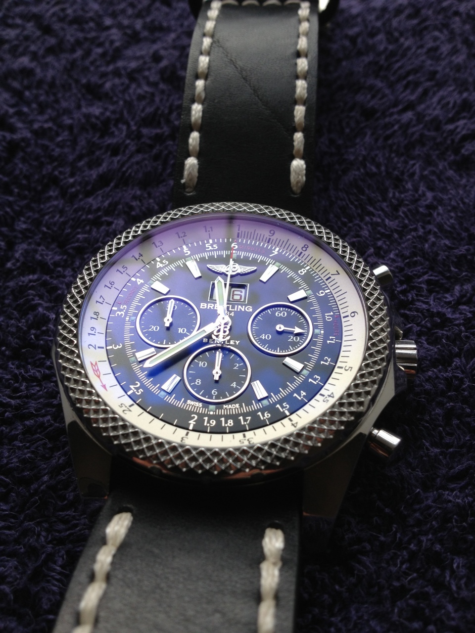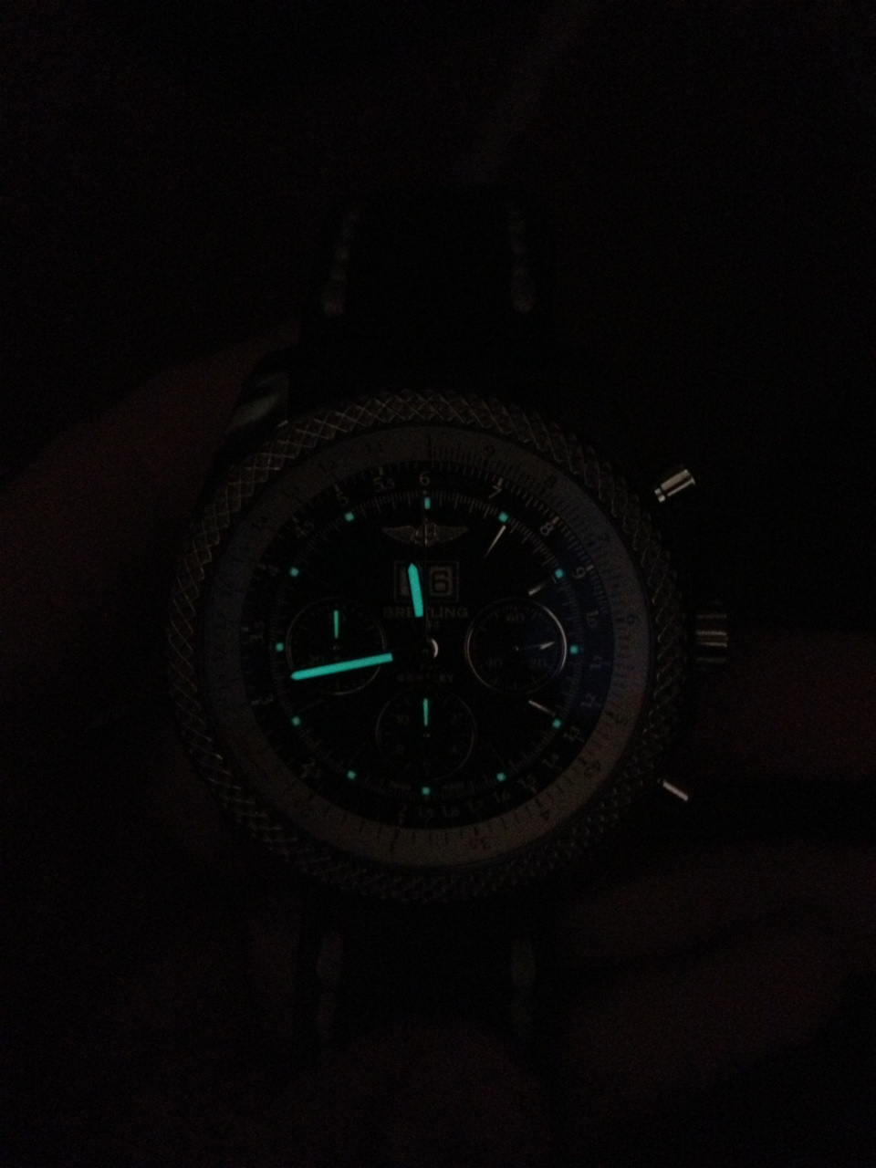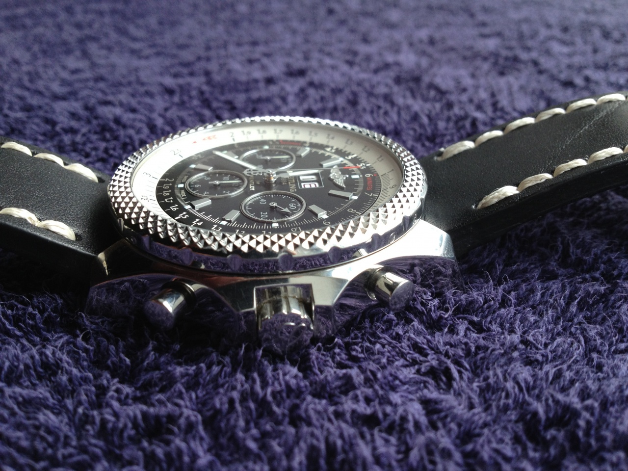 Пол: мужские Год покупки: 2011 БУ часы, состояние: AA (отличное) http://forum.watch.ru/images/market-question.png Полировка: нет Цена: 4 800 USD (продажа или обмен) Коробка: есть Документы: есть Ref. A44364 Корпус 48.7 мм, сталь, черный циферблат, специально декорированная задняя крышка в виде спиц колесного диска Bentley. Водозащита до 100 метров. Завинчивающаяся головка. Вращающийся безель с логарифмической шкалой (позволяет производить множество математических расчетов, имеется инструкция). Сапфировое стекло с противобликовым покрытием с двух сторон. Механизм Breitling Calibre 44B, сертификат хронометра COSC, с автоматическим подзаводом, частота 28800 пк/час, 38 камней, 1/4 секундный хронограф, 30-минутный и 12-часовой накопители. Большое окно даты. Вложение 548734Вложение 548748Вложение 548736 Вложение 548737Вложение 548738Вложение 548741 :D :D :D Вложение 548743 |