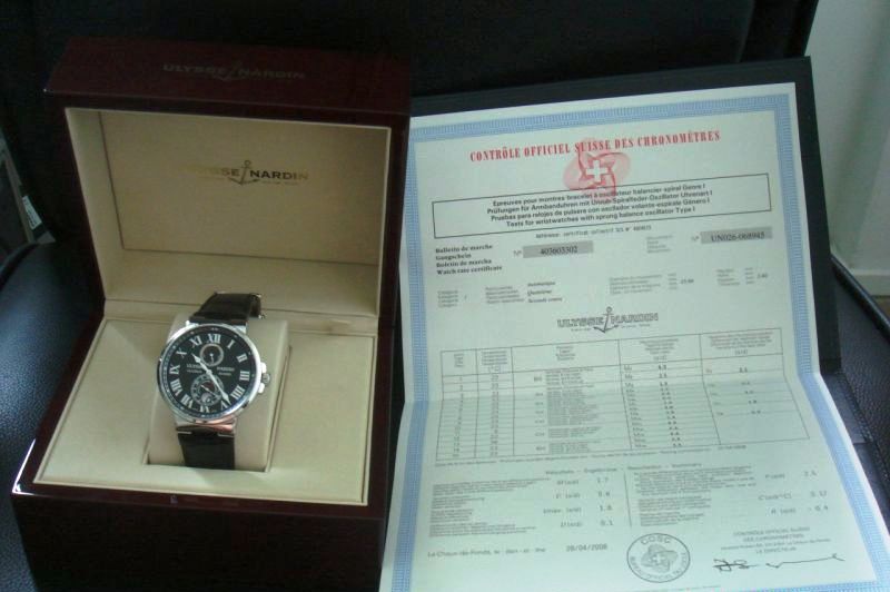 Пол: мужские Год покупки: 2013 Новые часы, состояние: N (новые в пленках) http://forum.watch.ru/images/market-question.png Цена: 4 700 EUR (продажа) Коробка: есть Документы: есть Ref: 263-67/42 Часы в Москве абсолютно новые в пленках со всеми документами, бирками и коробками. Гарантия официального дилера 3 года. ОПИСАНИЕ Ulysse Nardin с гордостью представляет Maxi Marine Chronometer 43 мм, который является дополнением к коллекции морских хронометров Maxi Marine. Часы Maxi Marine Chronometer 43mm 263-67/42 подчеркнут мужественность своего владельца. Высокотехнологичная нержавеющая сталь избрана для создания корпуса диаметром 43 мм и высотой 12 мм. Рифленная боковая поверхность фиксированного безеля придает часам королевский шарм. Защитные выступы предохраняют заводную головку от случайного поворота. На черном циферблате контрастно выделяются крупные стальные римские цифры. Окончания полированных стрелок и часовые маркеры, дублирующие цифры, покрыты слоем люминесцентной краски, светящейся в темноте, что повышает функциональность модели. Для лучшей считываемости данных дополнительные счетчики обрамлены серебристым ободком. Дополнительный большой секундный циферблат с увеличенной стрелкой установлен на позиции 6 часов. Индикатор запаса хода расположен ниже цифры 12. Увеличенное окно даты находится в плоскости секундного счетчика в позиции 6 часов. Автоматический калибр UN-26 — хронометр, сертифицированный COSC, работает на 28 драгоценных камнях и обладает запасом хода около 42 часов. Сапфировое стекло закрывает корпус с обеих сторон. Завинчивающаяся задняя крышка и заводная головка поддерживают водостойкость модели 20 атмосфер / 200 м. Дорогой чёрный ремешок из крокодиловой кожи, прошитый вручную, оснащен раскладывающейся застежкой. Официально сертифицированный механизм (C.O.S.C) ОФИЦИАЛЬНЫЙ САЙТ: http://www.ulysse-nardin.ch/ru/Шв...263-67_42.html Цена у оф. дилера в Европе: 7 200 € ВАША ЦЕНА: 4 700 € Вложение 554347Вложение 554348Вложение 554349Вложение 554350 |