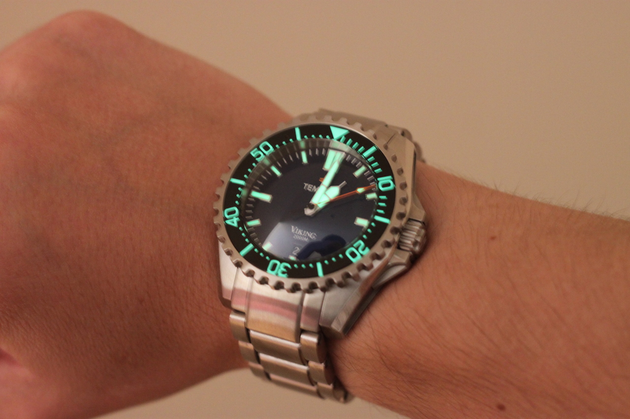 Буквально неделю назад случайно увидел на одном канале на ютубе обзор вот таких часов - Tempest Viking и часы мне жутко понравились, особенно с выпуклым сапфиром. Цена немного дурная - $865 с доставкой, но жабу задушил и вот часы у меня. ТТХ следующие: Размер корпуса - 45мм (корпус бочка), толщина - 21мм Механизм - Мийота 9015 (резерв 42 часа, хак, ручка) Корпус - нержавейка, тройная прокладка на ЗГ, двойная прокладка на задней крышке Циферблат - керамика, накладные метки Браслет - нержавейка, на HEX болтах Безель - нержавейка, с сапфировой вставкой, люм. Вращается в одну сторону, 120 кликов. Люм - Суперлюминова С3 Стекло - Выпуклый сапфир, антиотражатель внутри. Антимагнитные, держат воду до 2000м. Часы пришли вот в таком комплекте: Вложение 554683 Очень приятно, что за такие деньги положили отвертку. Сразу же укоротил браслет. Вложение 554671 Часы очень красивые. Вложение 554672 Особенно украшает их выпуклый сапфир. Вложение 554673 ЗГ массивная, с нанесенным логотипом компании. Вложение 554674 Задняя крышка глухая, с корабликом. Очень симпатично смотрится застежка браслета. Вложение 554676 Есть дайверское расширение для костюма. Вложение 554677 Ну и пару шотов на руке. Вложение 554678 Вложение 554679 Люм тут просто дурной, никогда еще такой яркий не видел. Вложение 554682 Часы реально тяжелые. |