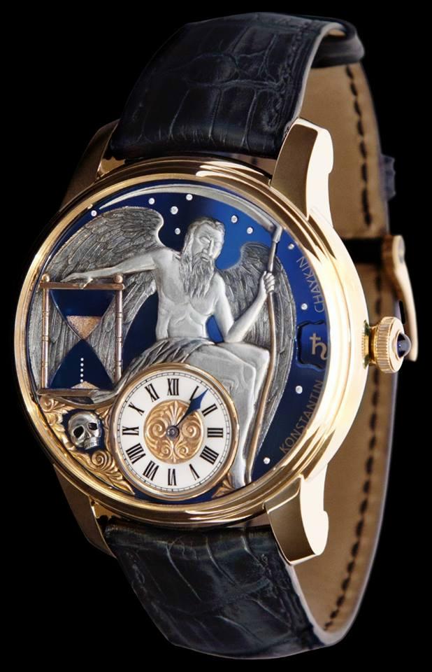 Новая лимитированная модель Carpe Diem (лат. "лови день", "наслаждайся моментом" - выражение из од Горация) от российского часового бренда Konstanin Chaykin имеет круглый корпус, изготовленный из 18-каратного розового золота, диаметром 45 мм. Рифленая заводная головка, расположенная на 3 часах, с кабошоном на ее торце. Сапфировое стекло защищает циферблат ручной работы, выполненный из 18-каратного розового золота и серебра, он инкрустирован одиннадцатью бриллиантами. Обращает на себя внимание механизм, который имитирует поток песка в песочных часах, расположенный на 9 часах.