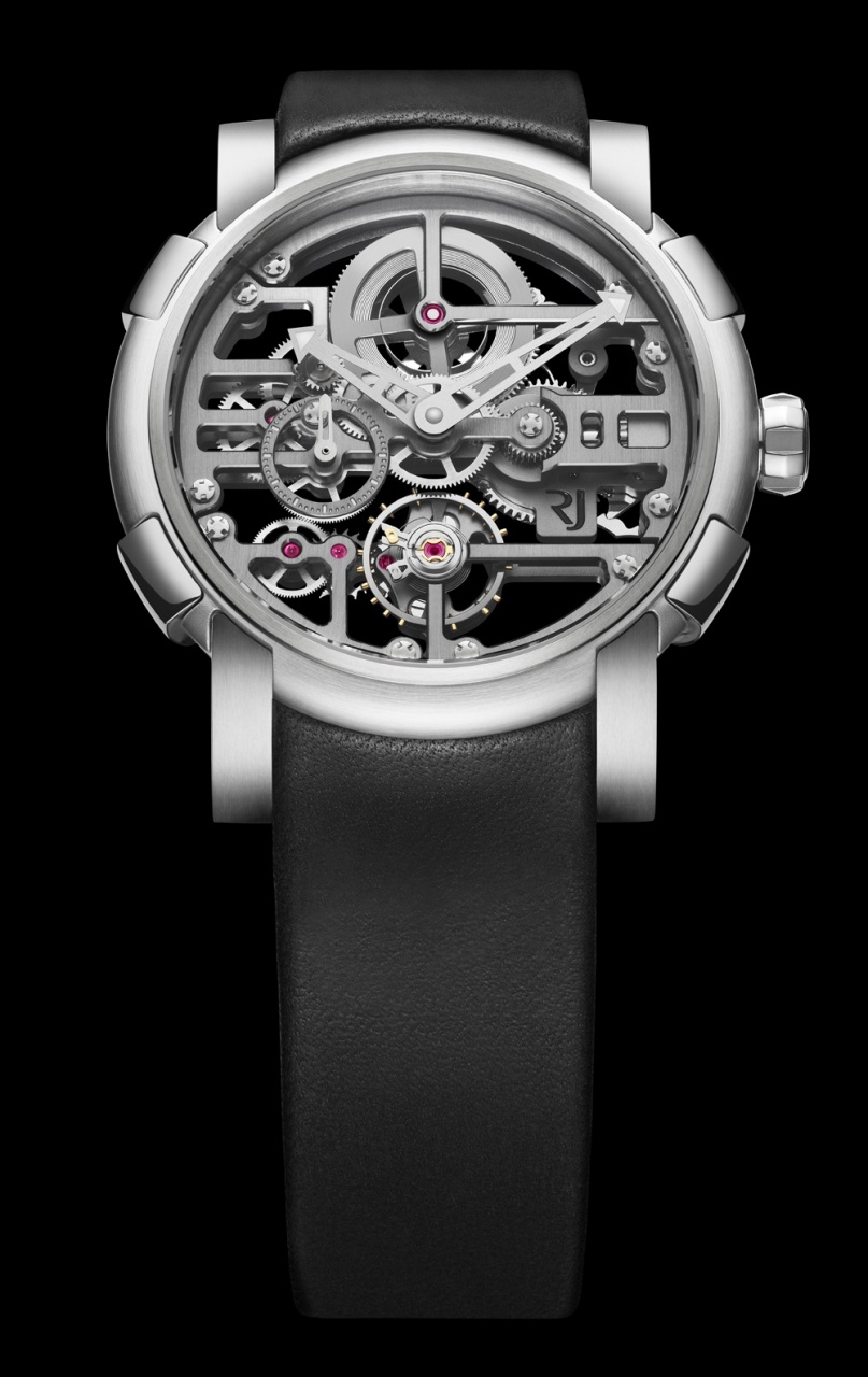 Часы RJ-Romain Jerome Skylab доступны в корпусе из розового золота 5N, либо стали с антрацитовым покрытием, или черным покрытием PVD.