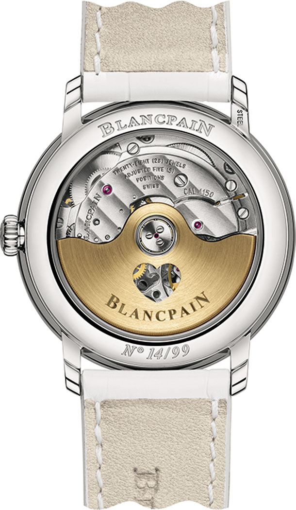 Каждый год, начиная с 2001, в честь Дня Святого Валентина мануфактура Blancpain выпускает новую модель женских часов. На белом жемчужном циферблате расположились фигурки сердец и бриллианты в виде часовых меток. Время отображается традиционными тремя стрелками, дата отображается в апертуре на 3-х часах. Безель часов инкрустирован белыми бриллиантами. Изысканные часы из белого золота 18к могут стать настоящей драгоценностью и любимым украшением, которое хочется носить каждый день.