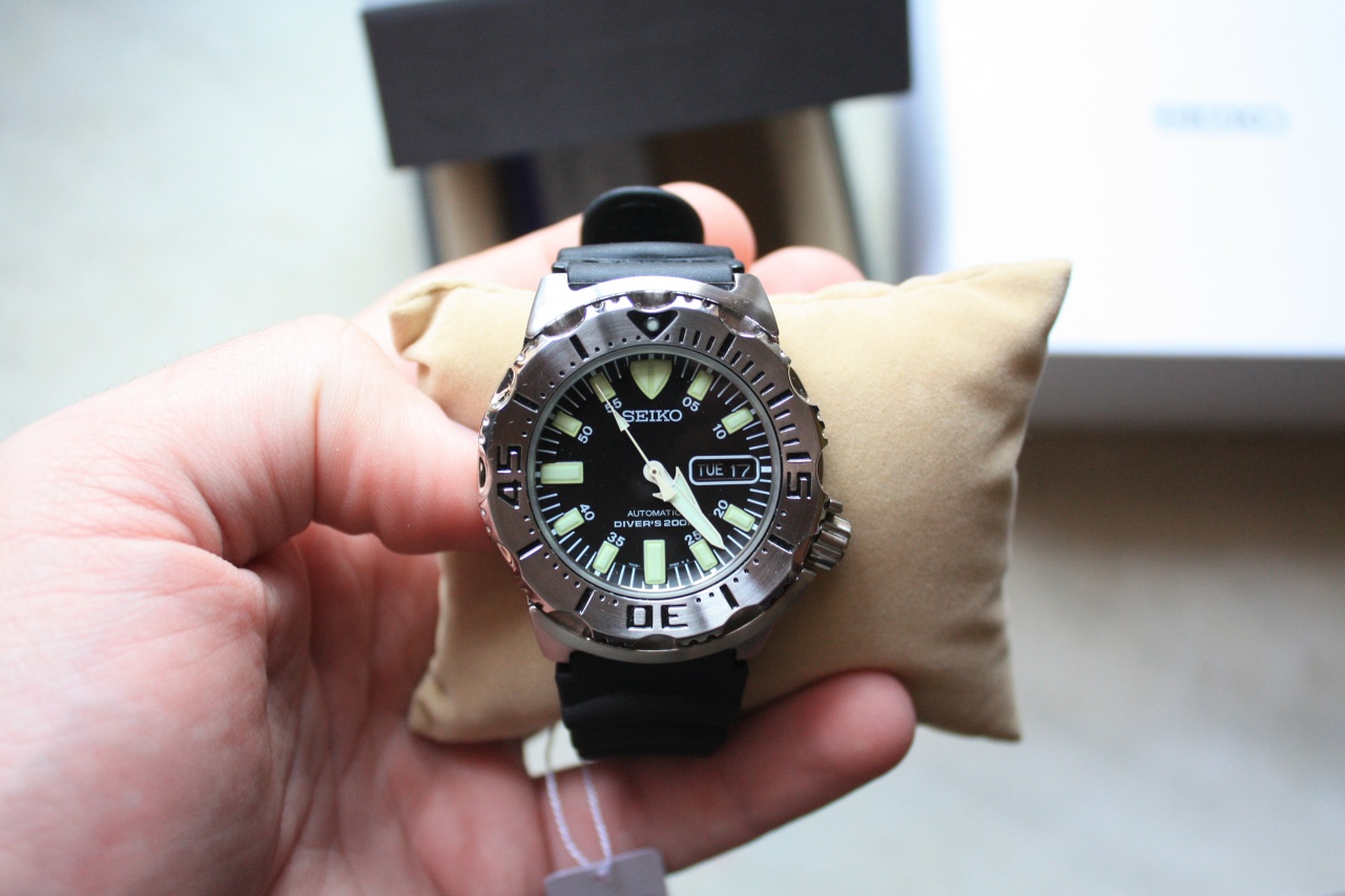 Пол: мужские Год покупки: 2013 Новые часы, состояние: N (новые в пленках) http://forum.watch.ru/images/market-question.png Цена: 7 500 руб. (продажа) Коробка: есть Документы: есть Абсолютно новые, полный комплект, фото делал я сам. Отправлю по России наложенным с описью, почтовики обязаны вкрыть при Вас посылку перед оплатой и выдачей для сверки описи. Порядочность гарантируется - посмотрите тему с отзывами обо мне как о продавце Легендарный “Черный Монстр” от Seiko. Механизм : механика с автоподзаводом 7S26. Допустимая точность +/- 15 сек в сутки. Усиленное ударопрочное минеральное стекло изготовленное по технологии Hardlex. Функции: дата, день недели. Заводная головка смещена на 4 часа. Вращающийся безель. Водозащита - 200 м. Корпус из высококачественной нержавеющей стали. Дайверский ремень На стрелках и рисках нанесен светонакопитель - в темноте светится. Размеры : Диаметр 42 мм, толщина 13 мм. Вложение 602562 Вложение 602563 Вложение 602564 Вложение 602565 |