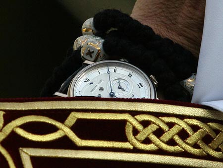 VIP.glavred не устает следить за внешним видом тех, кто на виду у всех. И даже Патриарх Московский и всея Руси Кирилл, который до 5 августа будет гостить в Украине, попал под прицел. Объектив нашего фотографа сфокусировался на часах Святейшего. На запястье Патриарх Кирилл носит часы фирмы Breguet.