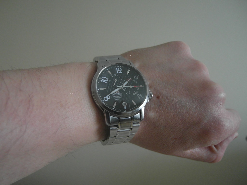 Что мы ждём от Ориента?Не погрешу против истины,если скажу,что эта компания производит лучшие часы в категории цена/качество.Лично я не знаю кто ещё может предложить часы подобного стиля и качества за такие смехотворные деньги.Даже Сейко или Ситизен. Ориент все же приятнее глазу.Может быть у них не такой совершенный механизм как у Ролекса,с его пожизненной гарантией,но носить Ориент приятно и он не выглядит дёшево. Говоря об Ориенте в голову приходит понятие –классика.Это то,что является выдающимся примером стиля,ценность и качество которого подтверждено несколькими покалениями.Классика всегда была и будет в моде.Это элегантно,это то,о чём говорят скромно и со вкусом. Всё это можно смело отнести к часам марки Orient. Первый Ориент мне привез брат в далеком 1991 из Вьетнама. Стоил он тогда $53.Модель 2EMAL001H.Они и сейчас смотрятся неплохо. Теперь позвольте перейти к нынешней модели СЕТ05002В0. Их я подарил себе на день рождения.Считаю что часы – единственный мужской аксессуар.И если я надену на себя золото,то это будут часы.Из белого золота.Я не богат,иначе я бы носил Chopard L.U.C(причем любой модели) или на худой конец Mont Blanc Star 4801.Желаю Вам всем такой возможности. Что я искал в часах? 1)Механику 2)Информативность,то есть дата,день недели. 3)Сапфир 4)Минимум 50 м водостойкости. 5)Стальной браслет 6)Черный рифлённый циферблат классического стиля 7)Острые стрелки(Не понимаю когда они палочного вида) Часы СЕТ05002В0 из интернет-магазина Skywatches,тот что в Сингапуре.Сначала я остановил взор на неплохой модели SER02002B0.Я искал сапфир,потому что на Сейко,который я носил,была царапина на пол-циферблата,о происхождении которой я решительно ничего не помнил. Потом увидел эти.Интересно что в сети о них – ни слова,как-будто их нет в природе.Но они есть-и вот доказательство. Вложение 610818 Вложение 610819 Вложение 610820 Вложение 610821 Вложение 610822 Вложение 610823 Вложение 610824 Вложение 610825 Теперь пару слов о стекле.Оно выпуклое.Насколько я знаю у Ориента всего 3-4 модели имеют выпуклый сапфир.Слишком долго шлифовать,поэтому дорого. Вложение 610826 Вложение 610827 Вложение 610828 Вложение 610829 По большому счёту,это аналог более бюджетной модели СЕТ05001.Разница в стекле,браслете,задней непрозрачной стенке.Начинка идентичная. И главное: часам на фото три года,ношу ежедневно. Цена:$150. Не ищите.Новых уже давно,нигде,ни за какие деньги,нет. |