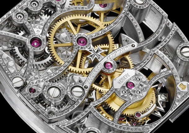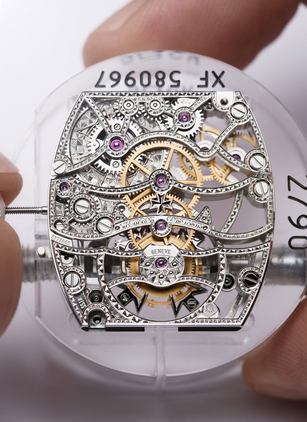 Vacheron Constantin предлагает свое решение одной из самых сложных и интересных задач часового дела — модель Malte Tourbillon Openworked. Появление этих часов устанавливает новый стандарт: столь искусное усложнение, как турбийон, теперь совмещено со скелетоном. Калибр разработан и изготовлен на Мануфактуре Дома и имеет Женевское клеймо. Поистине редкий экземпляр в коллекции «Высокое часовое искусство».