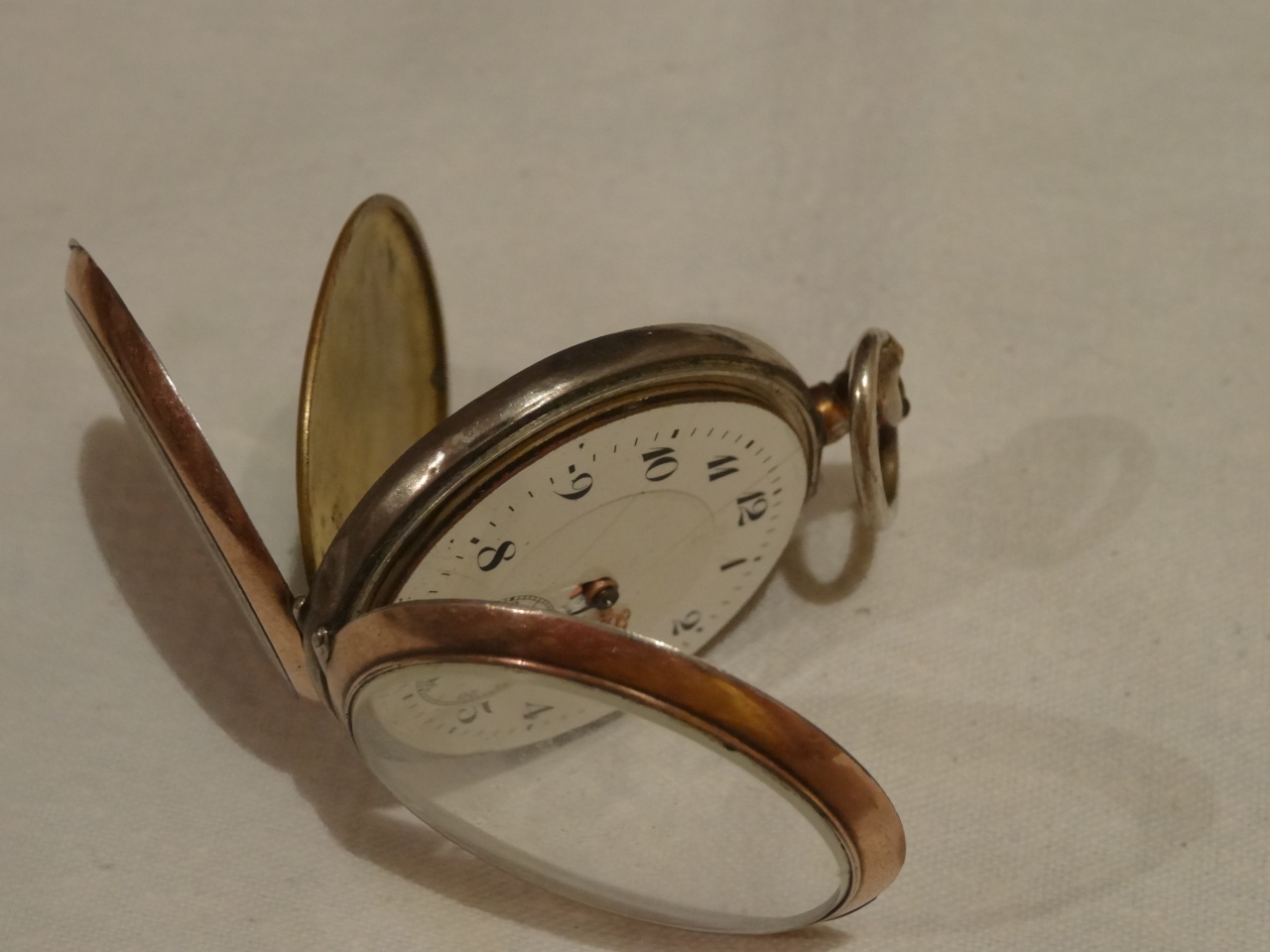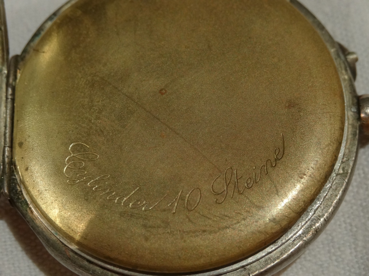 Насколько понимаю - Швейцария, нонейм. Первая четверть ХХ века. Недорогие (полагаю - женские) серебряные позолоченные часики с цилиндровым ходом на десяти камнях.