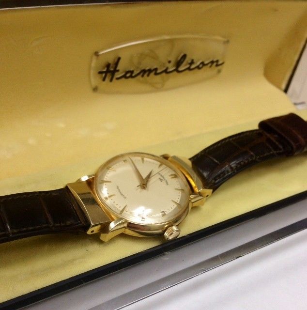 Rare Mens Vintage 1950s Hamilton CLD Solid 14K Gold Swing Lugs K200 Swiss Watch
