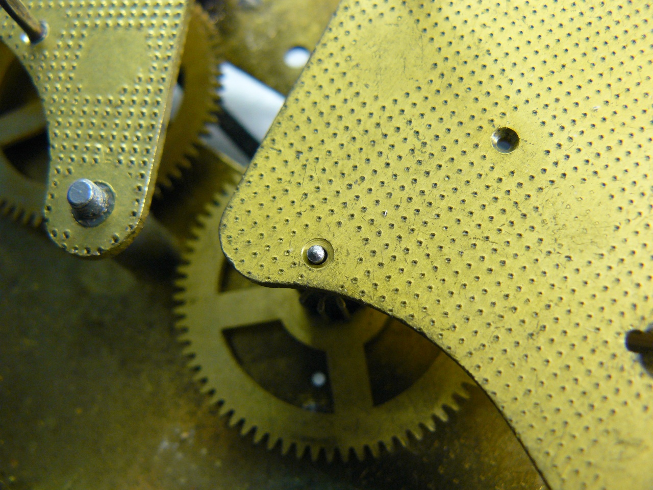 Первый: ось шестеренки привода кулачка боя в посадочном месте проделала вместо кружочка эллипсоид и там довольно свободно болтается. Как сделать так, чтобы был снова кружочек? Вторая: какие-то "мастера" пытались починить привод часового боя, похоже у них ничего не получилось. Заводная пружина не взводиться. Как мне ее достать эту пружину из барабана? И третий: сломана минутная стрелка. Думаю сделать металлическую подкладку вниз и все спаять жестким оловянным припоем и потом просто покрасить? Заранее прошу извинить за терминологию, потому как не специалист в часовом но руки кажется растут откуда надо. |