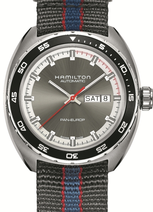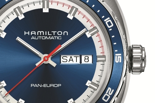 На международной часовой выставке Baselworld-2014, которая начнется в конце следующего месяца в Базеле (Швейцария), швейцарская часовая компания Hamilton официально представит свою новую модель Pan Europ. Дизайн новинки выполнен в стиле часов семидесятых годов прошлого столетия, посвященных автоспорту того времени.