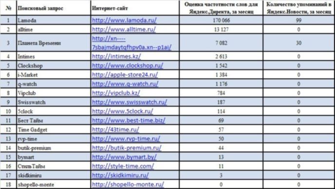 «"Omega" и "Tag Heuer" - самые популярные бренды часов среди россиян в поисковой системе Яндекс» и «первое место – ТМ "Omega" (116 упоминаний в Яндекс.Новости);»