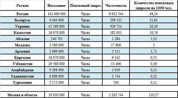 Ой бред это все! Уверен, что по запросам и массовой популярности в России (Украине, Беларуси) довольно крепкие занимают позиции такие марки (запросы) как: Tissot, Casio, Orient и т.п. - это вообще массовые популярные бренды. К очень многим моментам в этом "анализе" у меня есть вопросы, почти ко всему. При всем уважении к тагу, не думаю, что они популярнее у нас, чем тиссо, касио (по запросам) или более распиаренные и устоявшиеся в России Longines, которых кстати вообще не было в анализе, зато заметно менее популярный Edox на неплохих позициях.