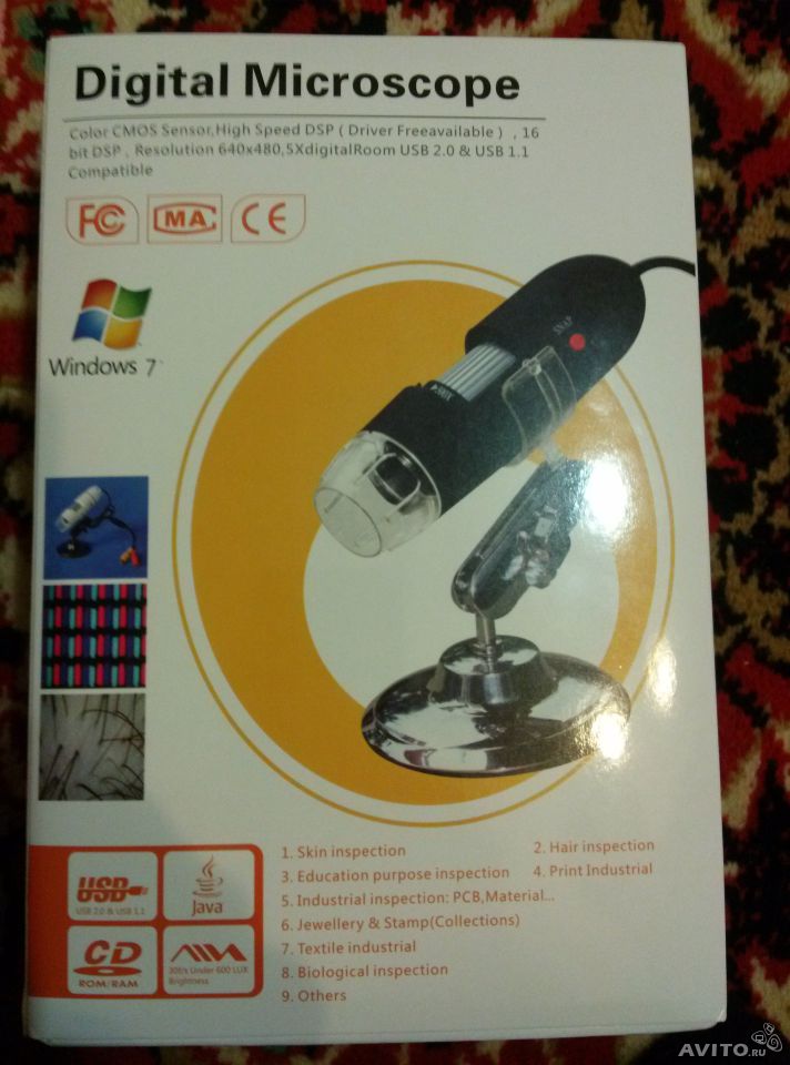 Портативный USB микроскоп подходит для проведения достаточно сложных исследований в различных сферах деятельности (электроника, медицина, ремонт техники, ювелирные работы, биологических исследований) Увеличение микроскопа составляет от 25 до 200 крат, что позволит испытать восторг от открытия совершенно нового микроскопического мира, скрытого от человеческих глаз Встроенная подсветка из 8 светодиодов позволит рассматривать любой объект даже в условиях недостаточной освещенности( ну или пользоваться микроскопом как фонариком – по желанию))) Может делать фотографии и видео-записи, отображает увеличенное изображение на экране компьютера. Определяется сразу как веб-камера и может запускаться приложением для веб-камер. Спецификация: Цвет: черный Длина: около 11.2cm Диаметр: около 3.3cm Длина кабеля: 1,5 м Увеличение: 25X - 200X(скоро будут микроскопы с увеличением 500крат(2000руб.) 2.0 мегапикселей Белая светодиодная подсветка Диапазон фокусировки: 0 -40мм (ручная регулировка ) Поддержка Win XP , Vista, Win7 32bit и 64bit Питание: USB ( 5 В) Компакт-диск с программным обеспечением, мини-линейка включены В состав входит: 1 x USB микроскоп 1 X CD 1 х Подставка для микроскопа 1 X Масштабкая линейка Доставка: у станции метро Полежаевская, а так же в метро в пределах кольцевой линии бесплатно. Доставка на Вашу станцию метро 150 руб. Доставка по адресу в зависимости от удаленности от метро 250-300 руб.(ну в общем как договоримся))) Артем; Цена 1300 руб. Вложение 644716Вложение 644717Вложение 644718 |
