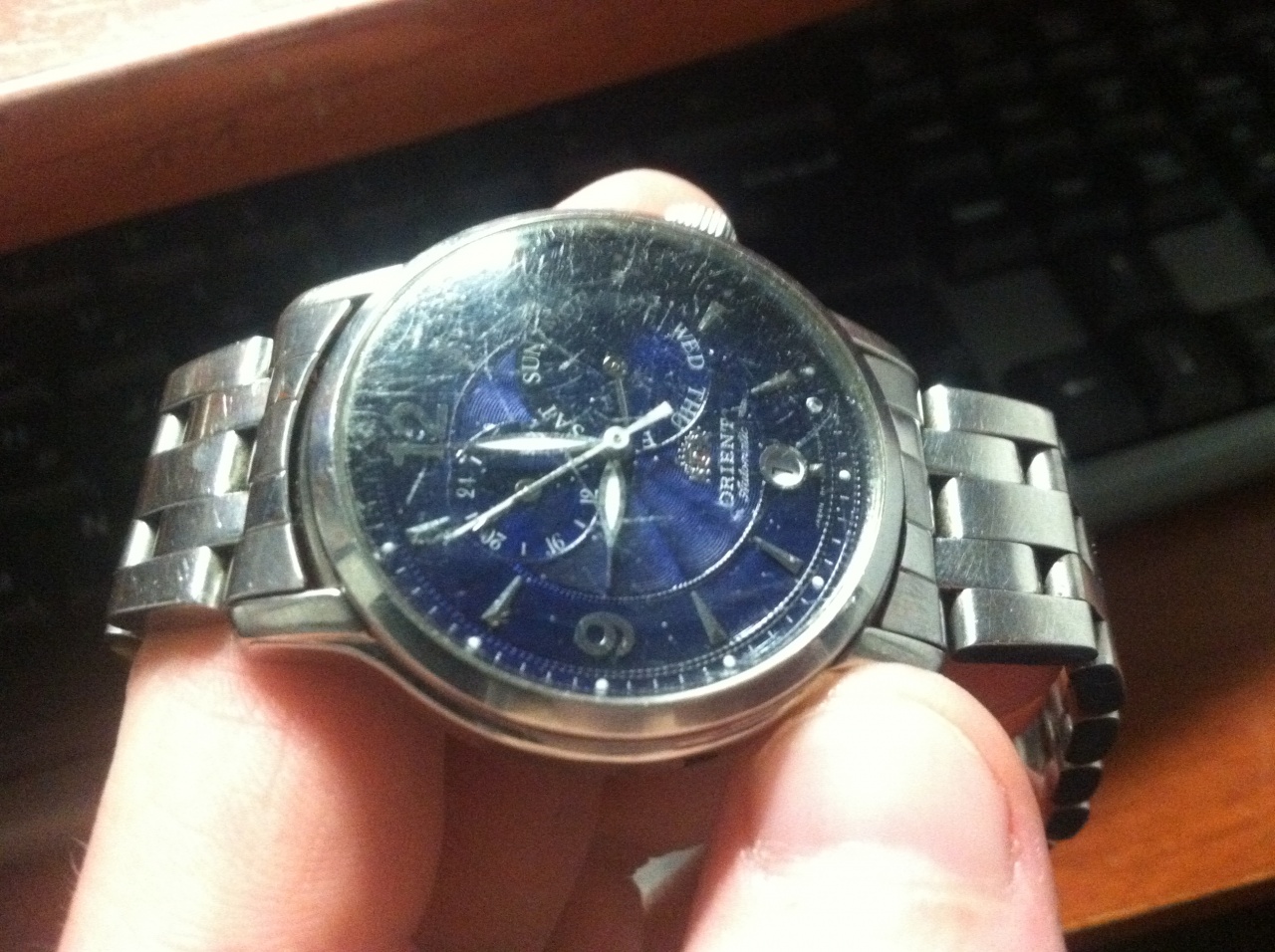 Вот как мои Ориент смотрелись до того как я сменил стекло, сделал это у мастера и часы сейчас смотрится отлично. По поводу герметичности я не заморачиваюсь, ибо в этих часах не плаваю, не принимаю душ и стараюсь уберечь их от попадания воды. Стекло практически не полируется, только замена. http://forum.watch.ru/showpost.php?p...postcount=1408 |