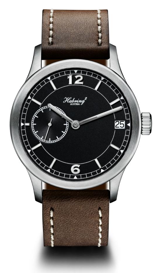Новинка имеет круглый матовый корпус, изготовленный из нержавеющей стали или (по запрсу) из титана, диаметром 42,0 мм, водонепроницаемый до 50 метров. Рифленая заводная головка расположена на 3 часах. Сапфировое стекло установлено на передней стороне часового корпуса (с антибликовым покрытием) и на его задней крышке. Циферблат серебряный, матово-черного, голубого или серого цвета, с накладными арабскими цифрами, часовыми индексами, полированными часовой и минутной стрелками, покрытыми люминесцентным составом SuperLuminova белого цвета. Модель оснащена механизмом с ручным заводом Habring² A09M (на 15 камнях, с 48-часовым запасом хода) или автоматическим механизмом Habring² A09 (на 21 камне, с 48-часовым запасом хода), с функциями индикации часов, минут (посредством соответствующих центральных стрелок) и секунд (на малом боковом циферблате, расположенном на 9 часах). Доступна также версия с индикацией даты (посредством соответствующего цифрового указателя в апертуре, расположенной на 3 часах). Поставляется на кожаном ремешке с застежкой из матовой нержавеющей стали в деревянной презентационной коробке. Цена модели составляет: версия, оснащенная калибром с ручным заводом - 2850 евро, версия, оснащенная автоматическим калибром - 3150 евро и версия, оснащенная автоматическим калибром с индикатором даты - 3550 евро. Источник: http://forums.timezone.com/index.php...=0#msg_6742420 |