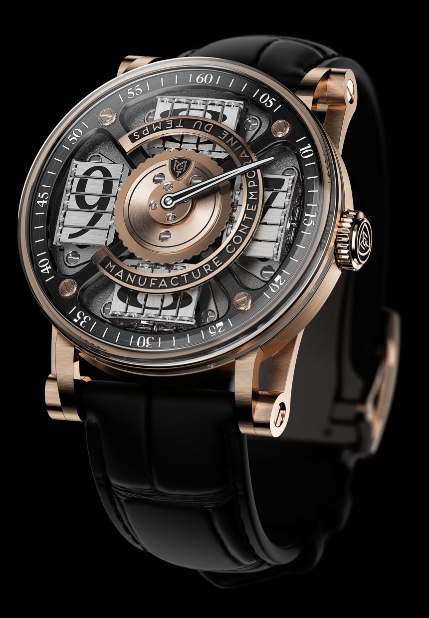 Корпус у новинки круглой формы, изготовлен из 18-каратного розового или из 18-каратного белого золота, состоящий из 43 деталей, диаметром 44,6 мм, толщиной 14,5 мм, водонепроницаемый до 30 метров. На торце заводной головки, расположенной на 3 часах, выгравировано наименование бренда. Сапфировое стекло установлено на передней стороне корпуса (с двусторонним антибликовым покрытием) и на его задней крышке (с внутренним антибликовым покрытием). Циферблат, как таковой, отсутствует. Модель оснащена мануфактурным швейцарским автоматическим механизмом МСТ-S2, состоящим из 507 деталей, на 85 камнях, с балансовой частотой 18000 полуколебаний в час (2,5 гц), микроротором автоподзавода из 18-каратного золота, запасом хода 40 часов, функциями секвентальной (поочередной), индикации времени. Калибр отлично отделан и декорирован. На передней стороне калибра имеется С-образное окно в середине, которое при наступлении нового часа поворачивается на одну позицию по часовой стрелке (на 90 градусов), открывая очередной блок из пяти трехгранных призм (всего таких блоков четыре, они расположены на 12, 3, 6 и 9 часах) показывающих текущий час. Смена граней, а соответственно и цифр показываемого часа, происходит в период, пока очередной блок закрыт 270-градусным вращающимся сектором с наименованием бренда. Индикация минут осуществляется посредством соответствующей центральной стрелки. Поставляется на черном ремешке из кожи аллигатора. Цена модели составляет $ 98500. Вложение 656783 Вложение 656784 Вложение 656785 Источник: http://www.ablogtowatch.com/mct-sequ...wo-s200-watch/ |