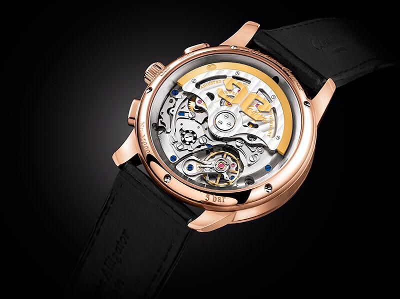 Модель оснащена новым мануфактурным немецким автоматическим механизмом Glashütte Original 37-01 диаметром 31,6 мм, с колонным колесом хронографа, усложнением flyback, трехчетвертной платиной, балансовой частотой 28800 полуколебаний в час (4 гц), двунаправленным золотым скелетонизированным ротором автоподзавода, 70-часовым запасом хода, функциями индикации часов, минут (посредством соответствующих центральных стрелок), секунд (на малом боковом циферблате, расположенном на 9 часах), даты (посредством соответствующего цифрового указателя в крупной апертуре, расположенной на 6 часах), запаса хода (посредством соответствующего секторного указателя, расположенного на 9 часах), а также с хронографом (центральная секундная стрелка с объемным изображением логотипа бренда Glashütte Original на ее противовесе, 30-минутным счетчиком, расположенным на 3 часах и 12-часовым счетчиком, расположенном на 12 часах). Калибр отменно отделан и декорирован.