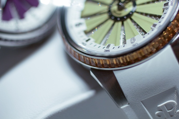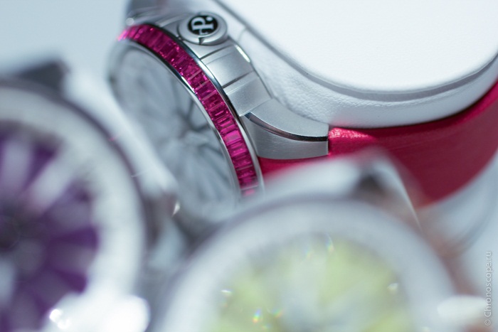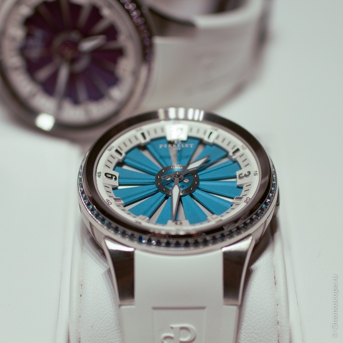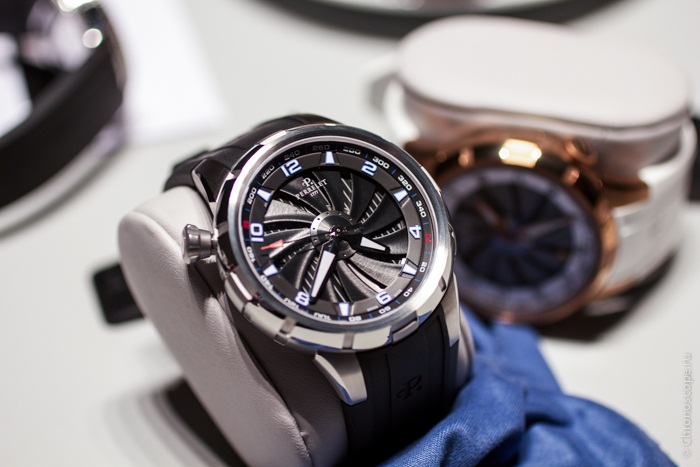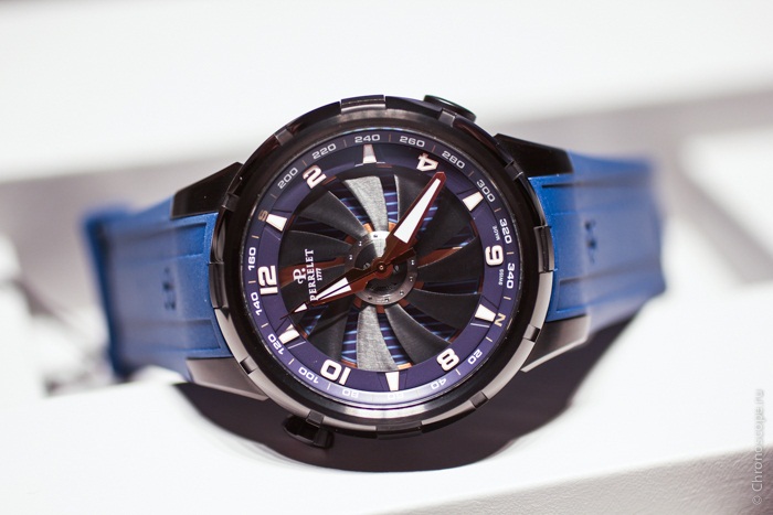 Новинки Perrelet на Baselworld-2014 Вложений: 12 Perrelet в 2014 году выпустила много новых «турбин» и в их числе оказались первые в истории марки авиаторские часы. Особенность моделей, входящих в серию Turbine Pilot заключается в том, что все они оснащаются внутренним кольцом с нанесенной на него логарифмической линейкой, которая используется для выполнения расчетов, таких как умножение, деление перевод из одной величины в другую (например из миль в километры).  Линейка вращается при помощи головки, расположенной на «3 часах», причем из-за нее коронку, отвечающую за коррекцию времени пришлось перенести на «9 часов». Модели из этой коллекции оснащаются автоматическими механизмами P-331, собранными in-house. Циферблат сделан из сапфирового стекла (на него наклеены часовые индексы), а «турбина» вращается под ним. Диаметр корпуса — 48 мм. Вторая важная коллекция — Tourbine Taste. Это женские часы, декорированные драгоценными камнями. Под лопастями «турбин» спрятаны бриллианты (всего 72 камня), а корпуса декорированы рубинами, цитринами, топазами, аметистами и сапфирами багетной или круглой огранки. Корпуса выполнены из стали, их диаметр составляет 41 мм. Вложение 677609Вложение 677610 Вложение 677611Вложение 677612Вложение 677613Вложение 677614 Обновилась и дайверская коллекция: Вложение 677615Вложение 677616Вложение 677617 А это модели для поклонников азартных игр, в частности покера и рулетки: Вложение 677618 Вложение 677619 Источник: http://chronoscope.ru/2014/04/perrelet-baselworld-2014/ |