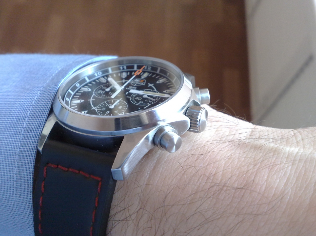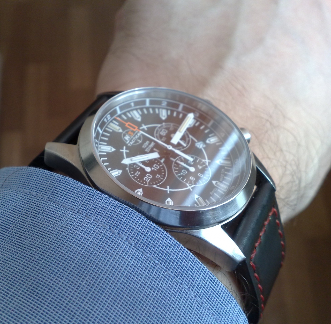 приобрел вот такие б/у часики. родной ремень (каучуковый) заменил на кожу.
