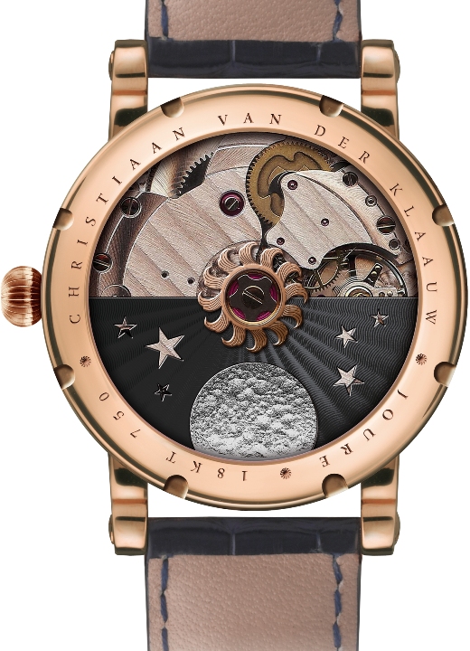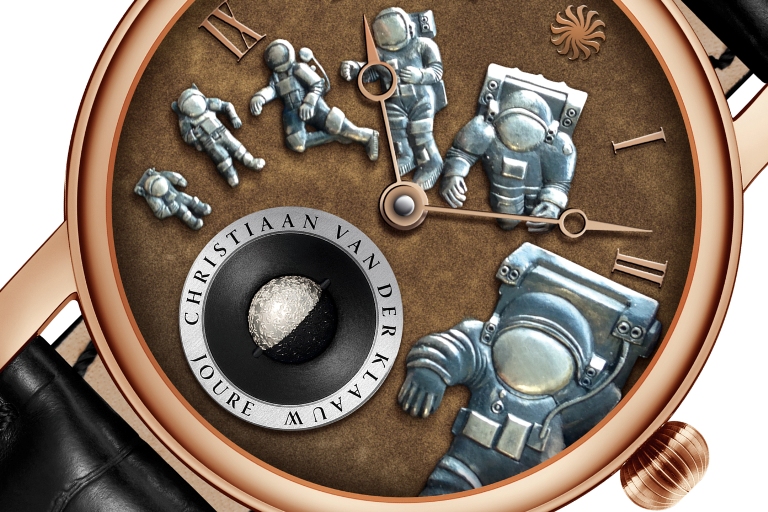 В текущем году голландская часовая компания Christiaan van der Klaauw, известная своими астрономическими часами, представила свою новую модель Rush Hour at the Moon, отличающуюся гравированными объемными изображениями космонавтов на циферблате, а также отделкой калибра, выполненными известным мастером-гравером Kees Engelbarts, а также эксклюзивным указателем фаз Луны, не требующий регулировки 11000 лет.