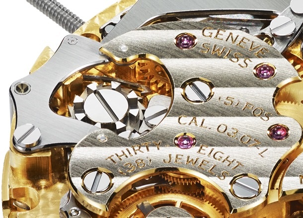 Дизайн новинки выполнен в элегантном классическом стиле. Корпус круглый полированный, изготовленный из 18-каратного розового золота, диаметром 42,0 мм, толщиной 11,5 мм. На торце рифленой заводной головки, расположенной на 3 часах, выгравировано изображение логотипа бренда - L.U.C. Пушеры хронографа - на 2 и 4 часах. Сапфировое стекло установлено на лицевой стороне корпуса и на его завинчивающейся задней крышке. Циферблат лакированный, белого цвета, с черными римскими цифрами. Стрелки, указывающие текущее время выполнены из золота, хронографические - малинового цвета. Модель оснащена мануфактурным механизмом с ручным заводом L.U.C 03.07-L, с колонным колесом хронографа и вертикальным сцеплением, балансовой частотой 28800 полуколебаний в час (4 гц), запасом хода 60 часов, функциями индикации часов, минут (посредством соответствующих центральных стрелок) и секунд (на малом боковом циферблате, расположенном на 6 часах), даты (посредством соответствующего цифрового указателя в апертуре, расположенной между 4 и 5 часами), а также с хронографом (центральная секундная стрелка, 30-минутный счетчик, расположенный на 3 часах и 12-часовый счетчик, расположенный на 9 часах). Калибр отлично отделан и декорирован. Модель отмечена женевским клеймом ("Geneva Seal"). Поставляется на коричневом ремешке из кожи аллигатора с застежкой из 18-каратного розового золота. Лимитированный выпуск по 50 экземпляров (по одному экземпляру на каждый год владения компанией Chopard семьей Шойфеле). Вложение 700856Вложение 700857 Вложение 700858 Вложение 700859Вложение 700860 Вложение 700861Вложение 700862 Источник: http://blog.perpetuelle.com/watches/...house-caliber/ |